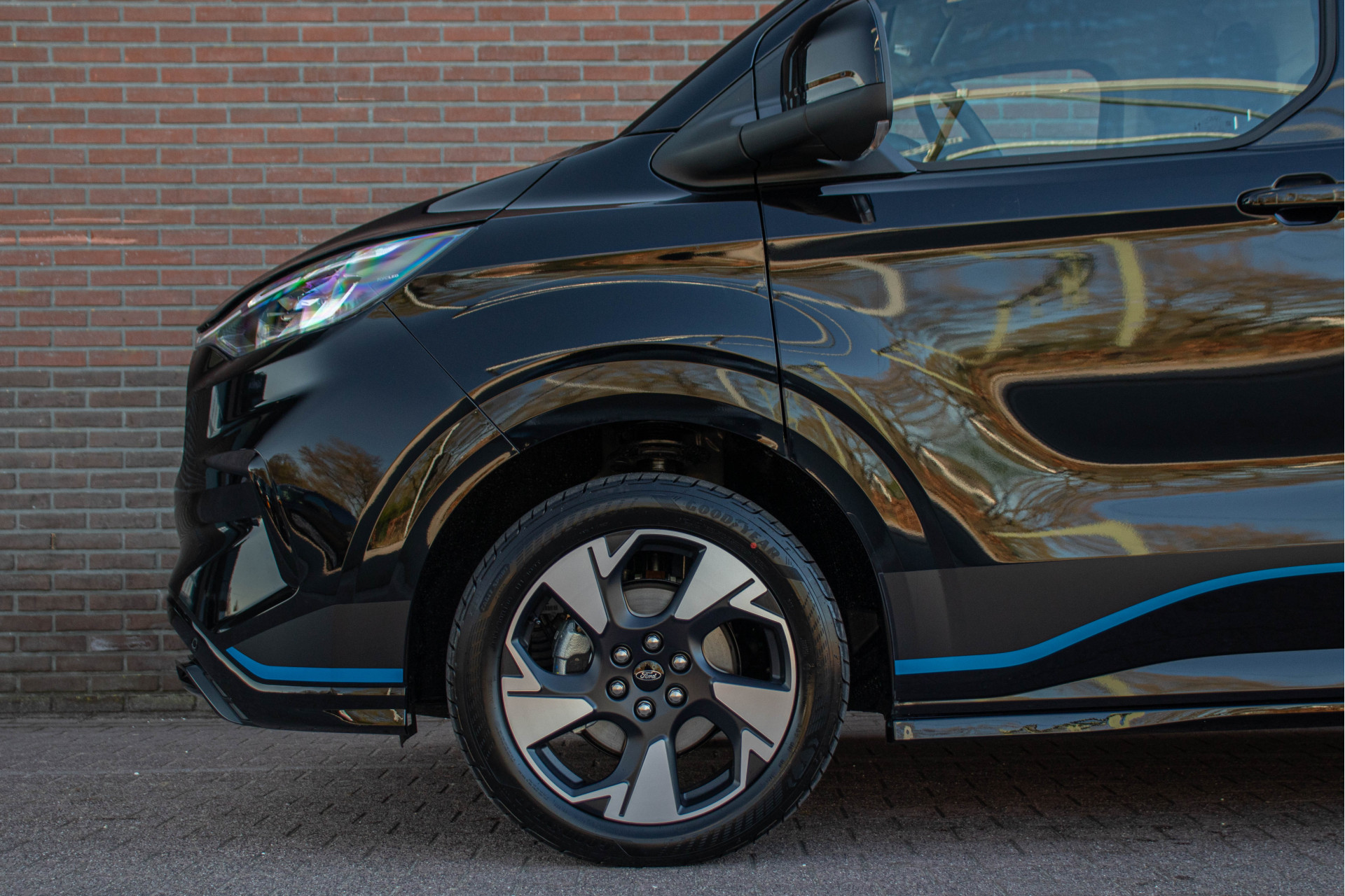 Zeer complete en dynamische Transit Custom met een 8-traps automaat in de meest luxe Sport uitrusting. Deze is heel herkenbaar aan de Sport Striping, 'Aqua Blue' stoffen bekleding (grijs met blauwe accenten) en achterspoiler.