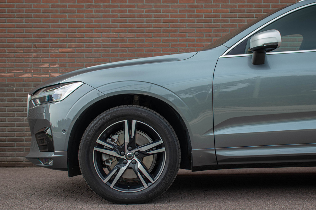 De R-Design uitrusting in combinatie met 'Osmium Grey' metallic lak, 'Silk Metal' raamomlijsting, 5-dubbelspaaks Diamantgeslepen/grafietoptiek velgen en 'Charcoal' interieur met Nappa leder / Nubuck bekleding en 'Metal Mesh Aluminium' inleg geven de Volvo een dynamische uitstraling.