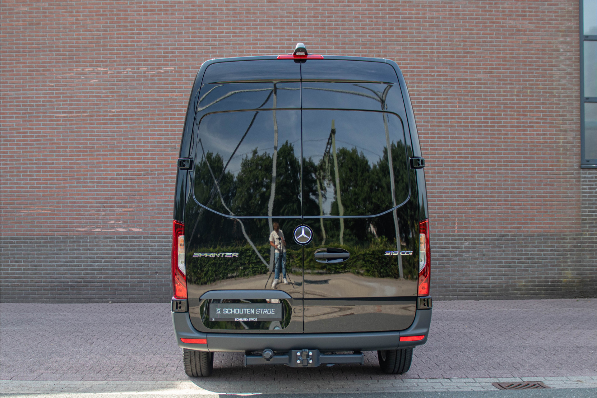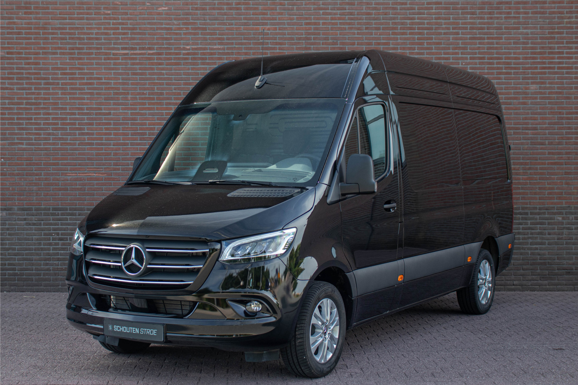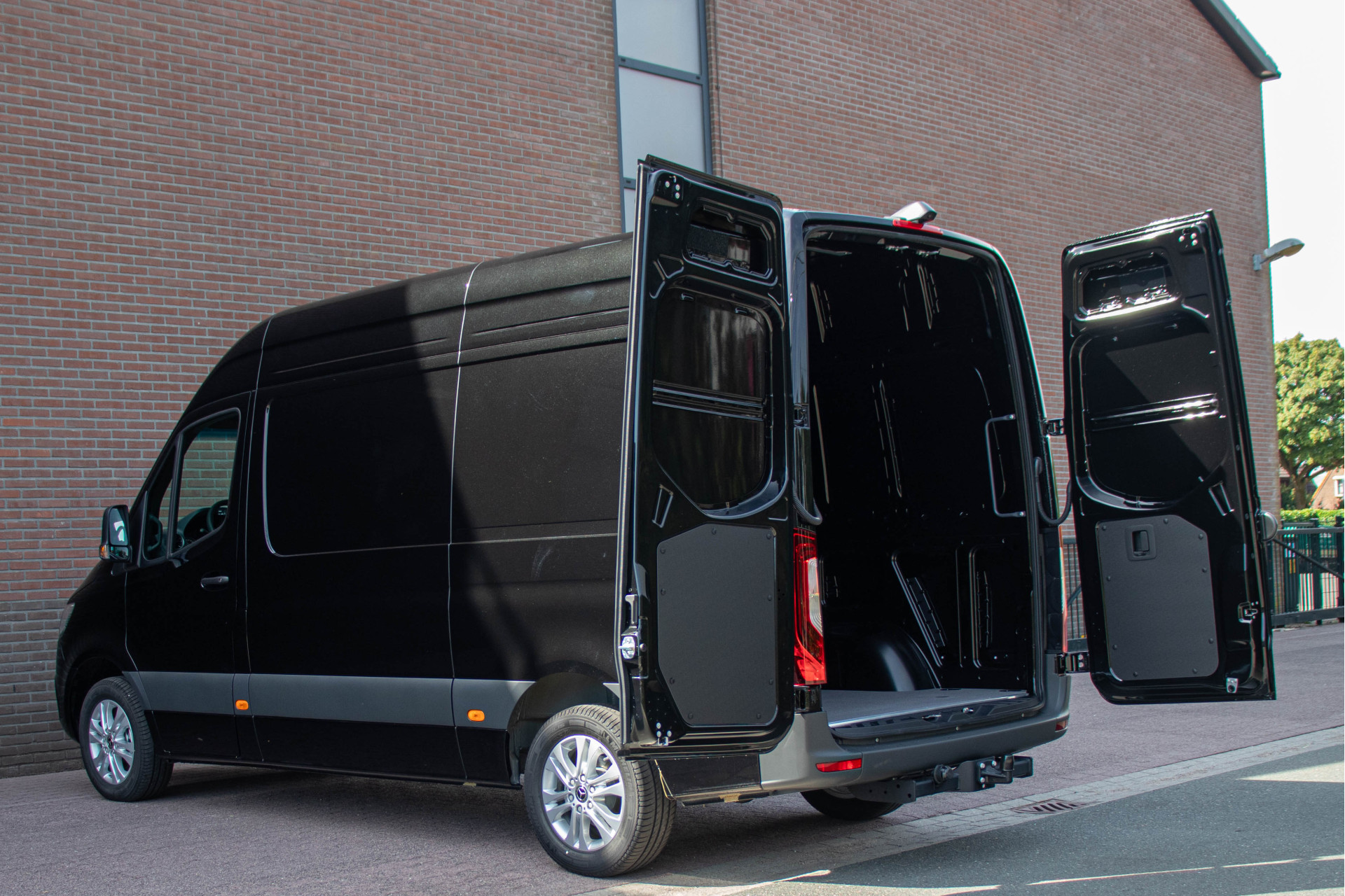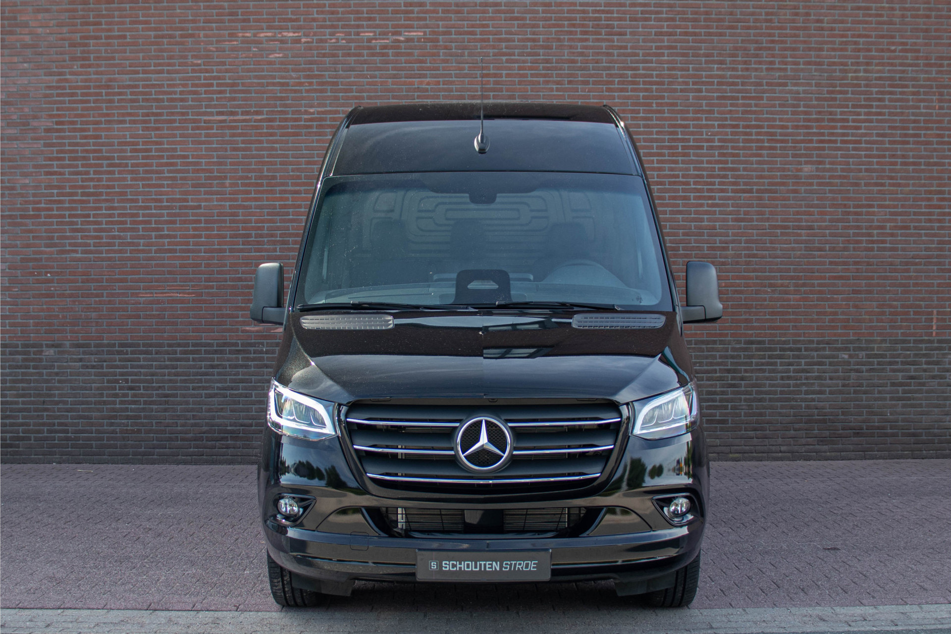 Bij deze Sprinter bieden wij de mogelijkheid om te kiezen voor het Schouten Stroe Black Pack; treeplanken zwart, grille voorzijde hoogglans zwart, spiegelkappen en randen hoogglans zwart, poedercoaten velgen in hoogglans zwart, logo achterzijde hoogglans zwart en type aanduiding verwijderen achterdeuren.