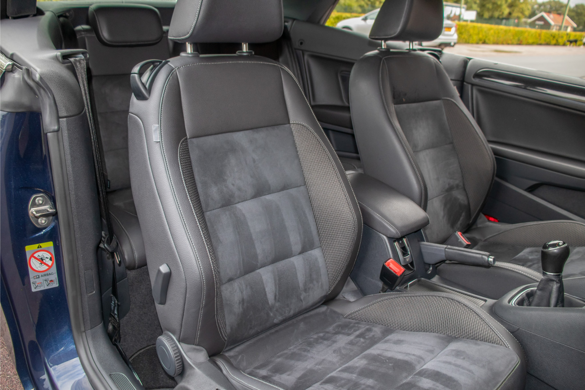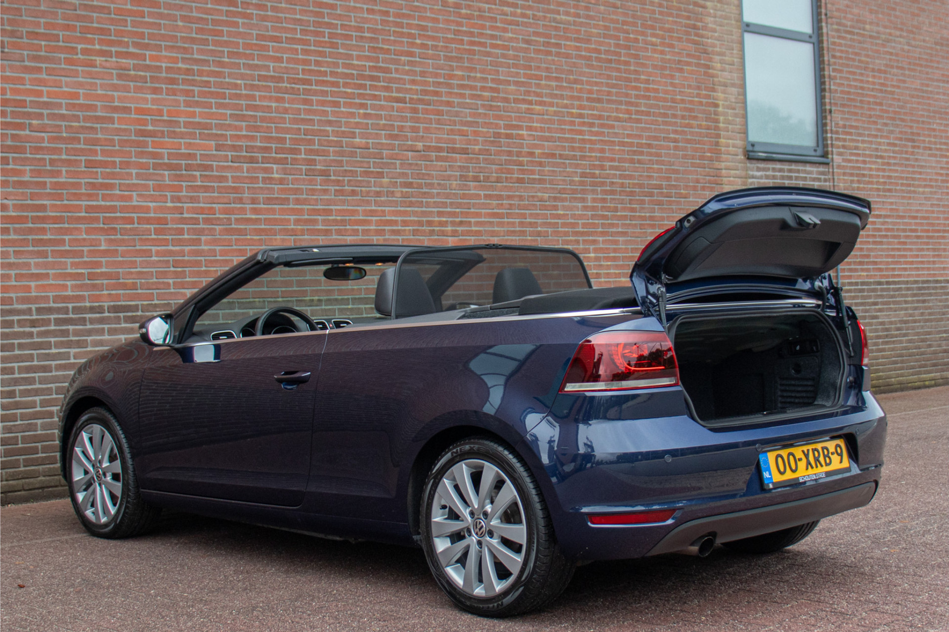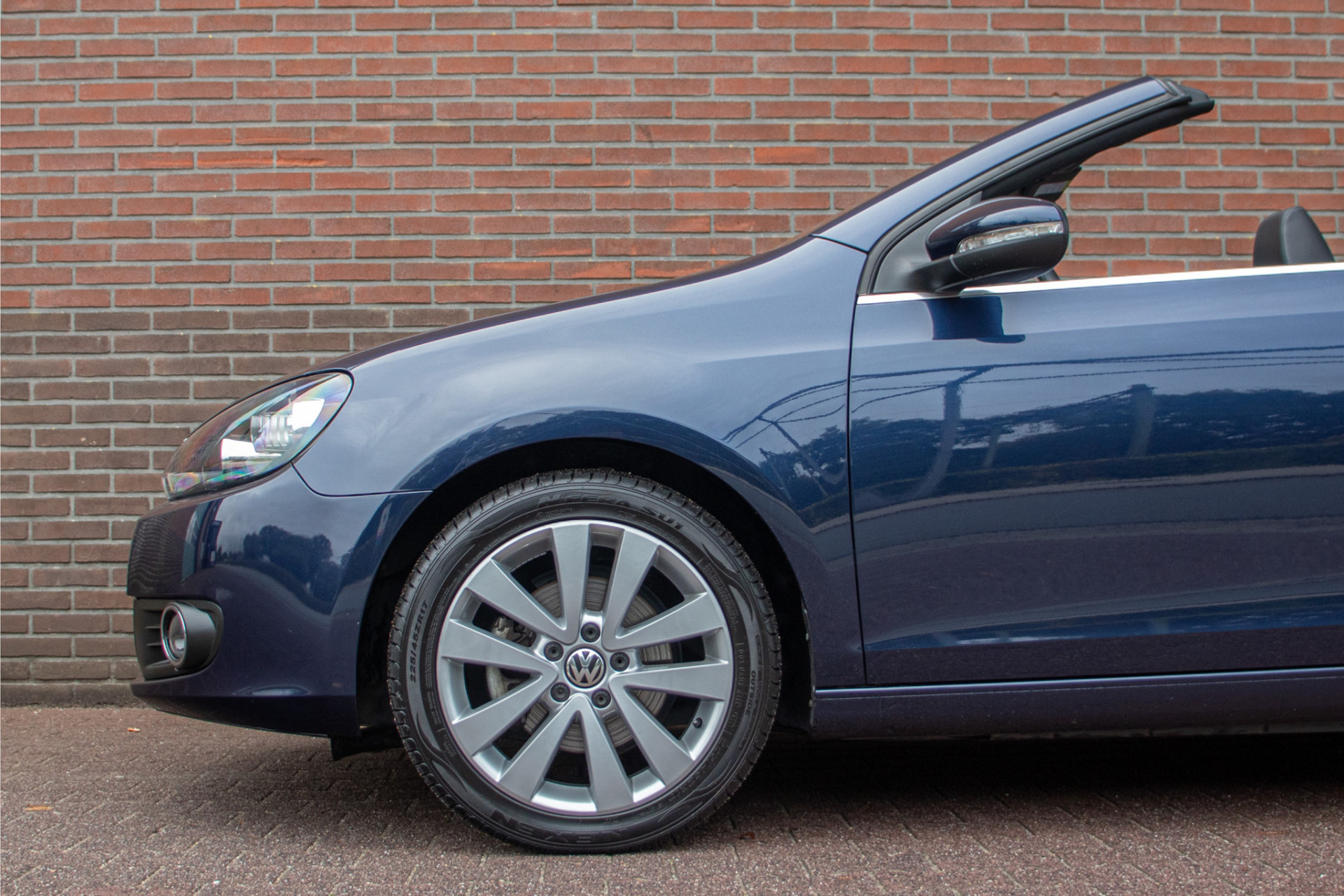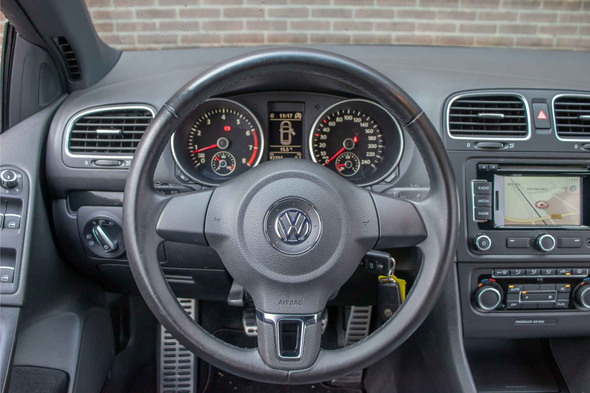 Standaard is deze Golf ook nog voorzien van o.a. cruise control, automatische Hill Hold functie, in hoogte verstelbare voorstoelen, lederen stuurwiel, boordcomputer 'Plus', volledig elektrisch-hydraulisch bedienbare stoffen kap en LED-achterlichten.
