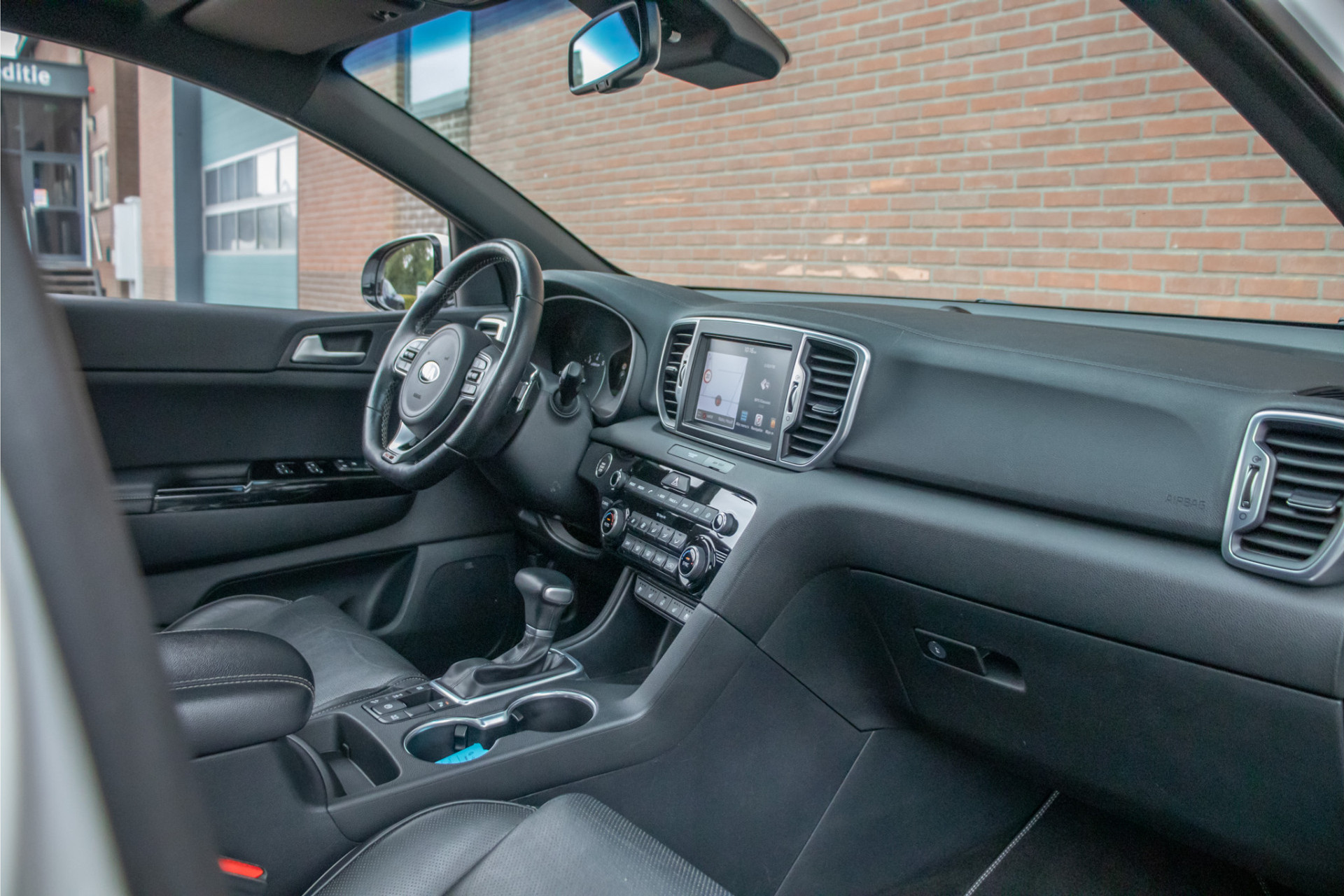 Daarnaast is deze Kia ook standaard zeer met compleet met o.a. lederen bekleding, D-shaped stuurwiel met stuurwielverwarming en schakelflippers, aluminium instaplijsten en pedalen, Ice Cube LED-mistlampen vóór, 19" lichtmetalen velgen, dubbele uitlaat, GT-Line grille in hoogglans zwart, stoelverwarming voor en achter, digitale radio, Apple Carplay/Android Auto voorbereiding, Supervision instrumentencluster, actieve rijbaanassistentie, snelheidsbordenherkenning, grootlichtassistentie, elektrisch bedienbare handrem, panorama schuif-/kanteldak, Smart Key, parkeersensoren vóór en achter en privacy glass.