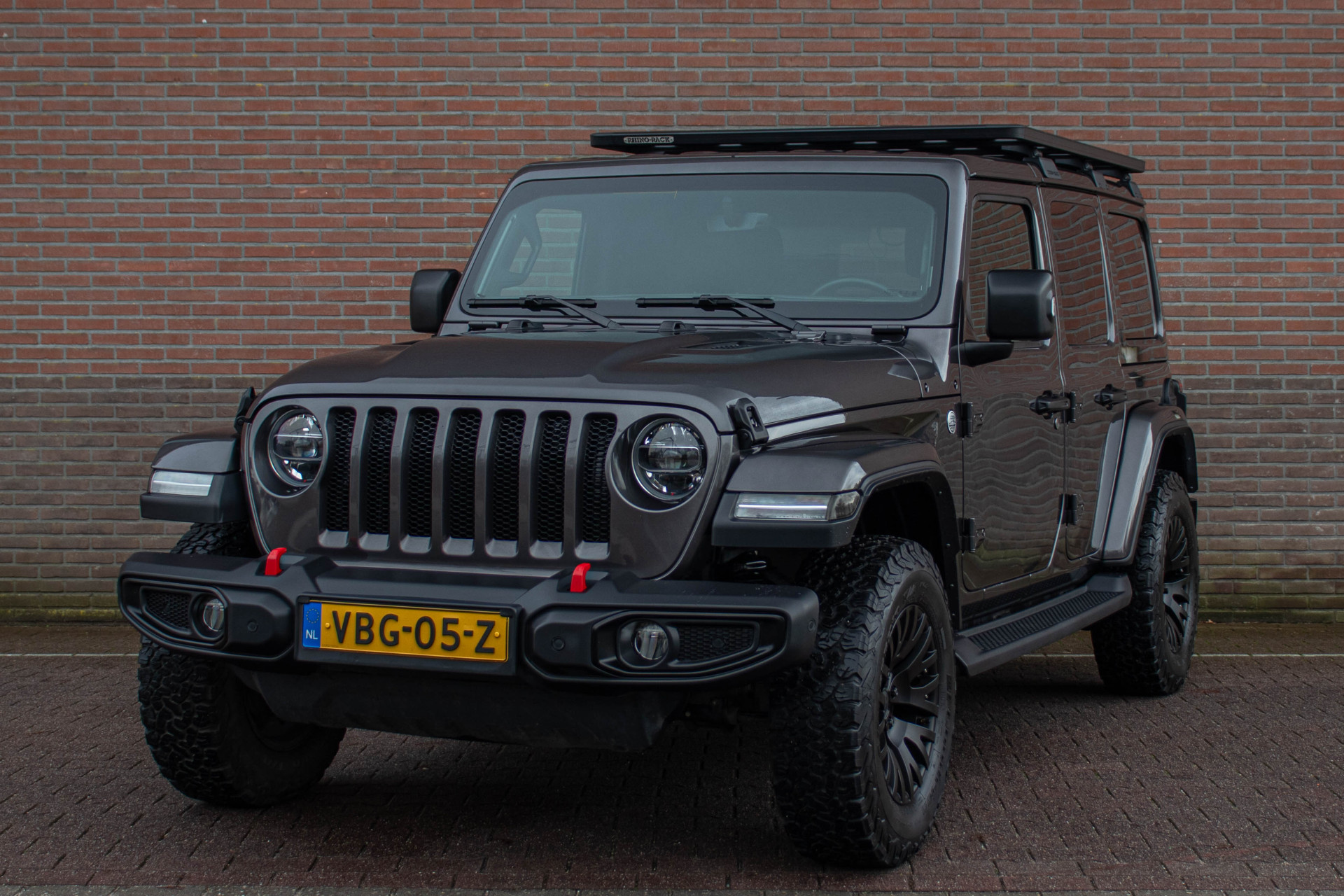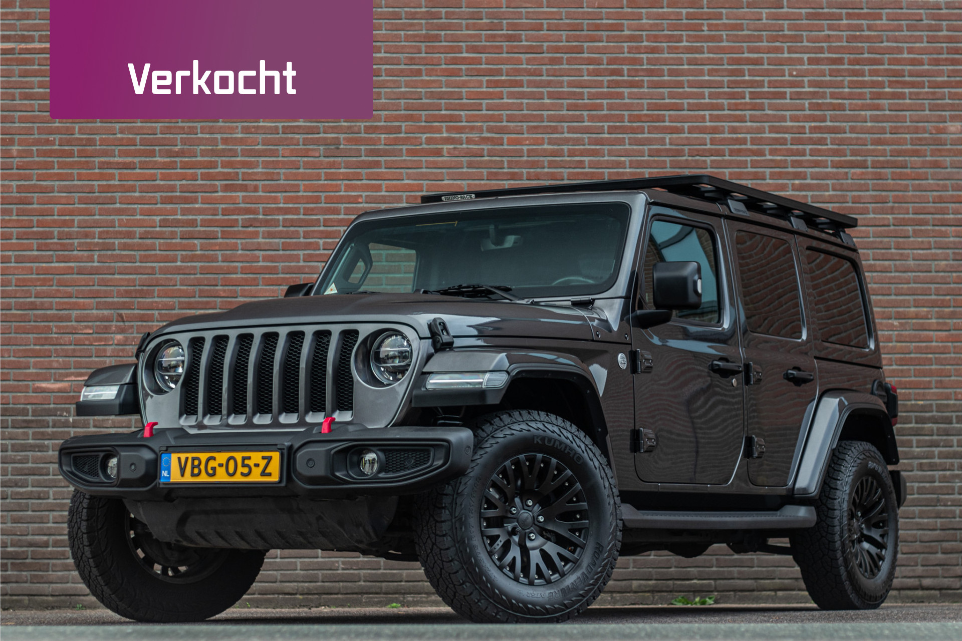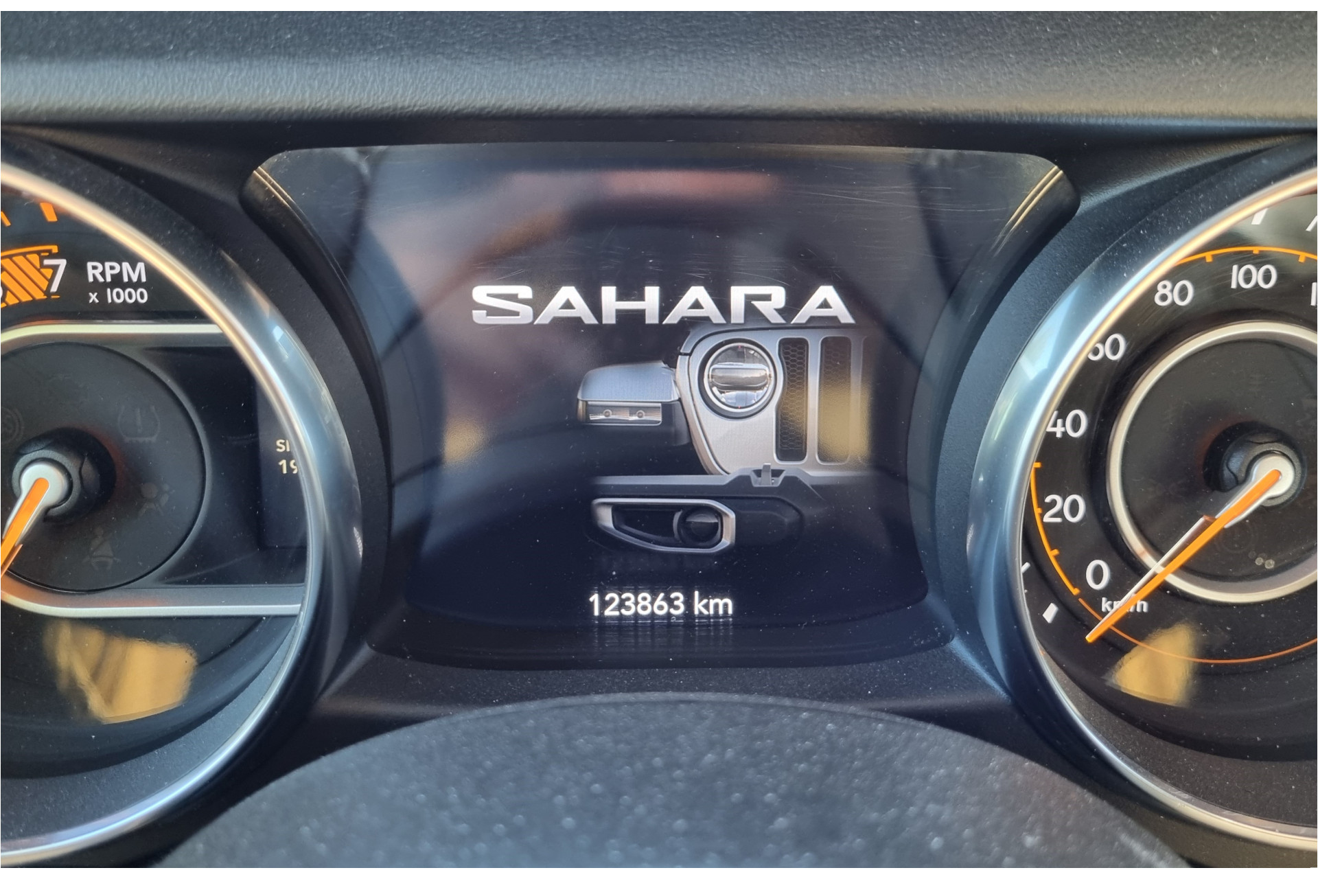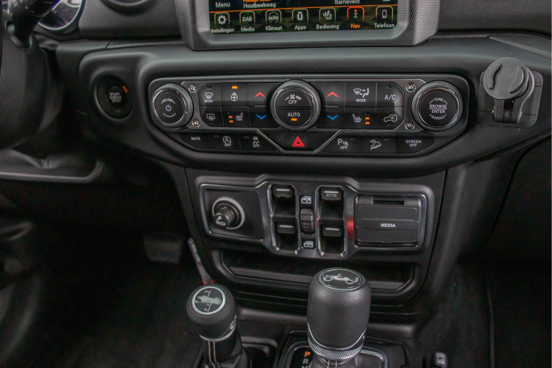 Als Sahara al rijkelijk voorzien van voorzieningen als Uconnect LIVE infotainmentsysteem met 8,4-inch touchscreen, navigatie, Bluetooth en Apple Carplay & Android Auto, ParkView achteruitrijcamera, Parksense parkeerhulp voor/achter en koplampen met Signature LED verlichting.