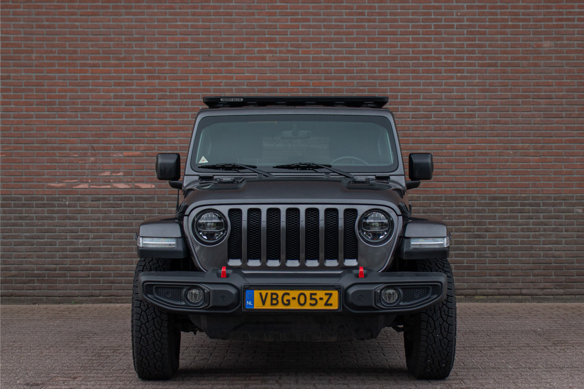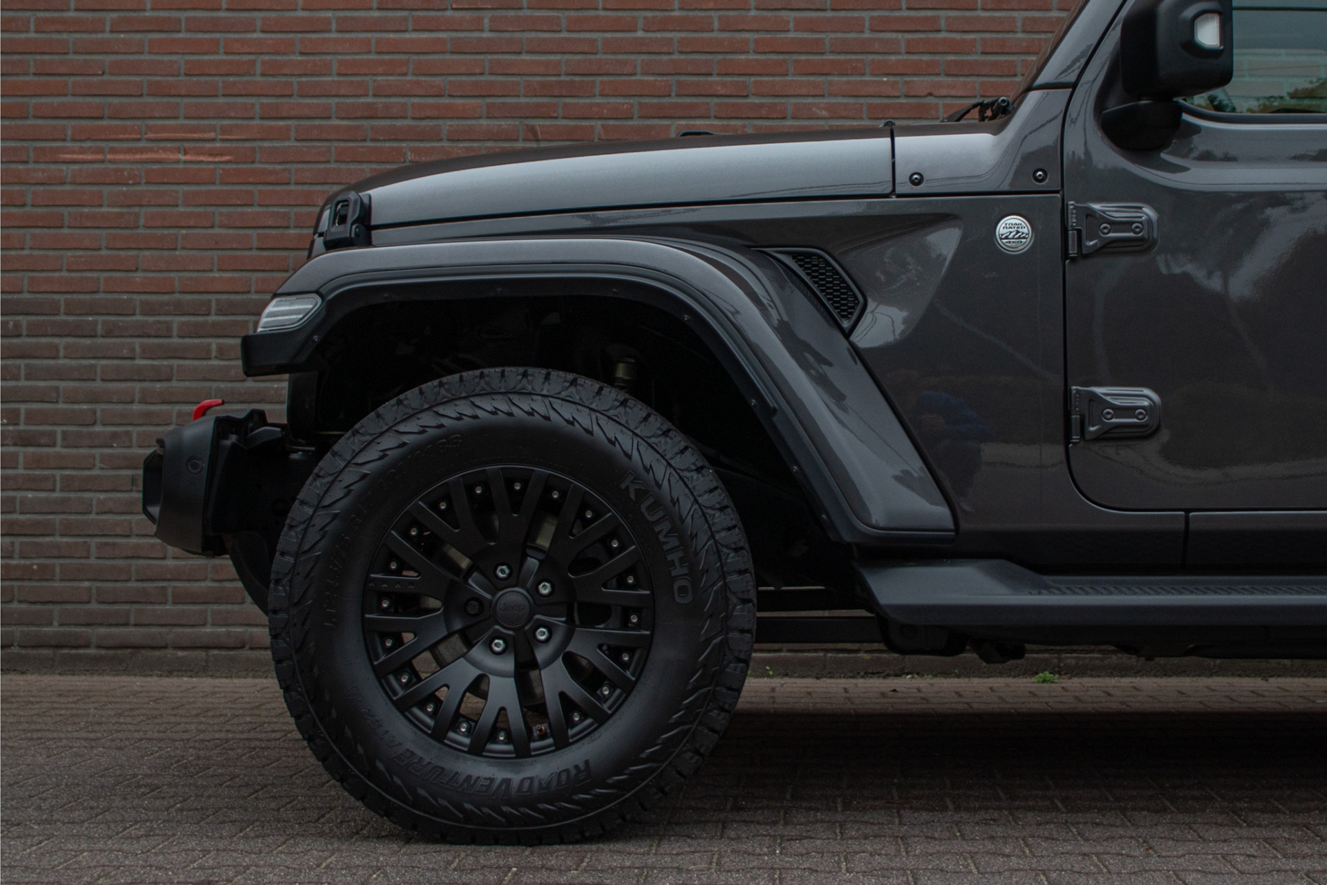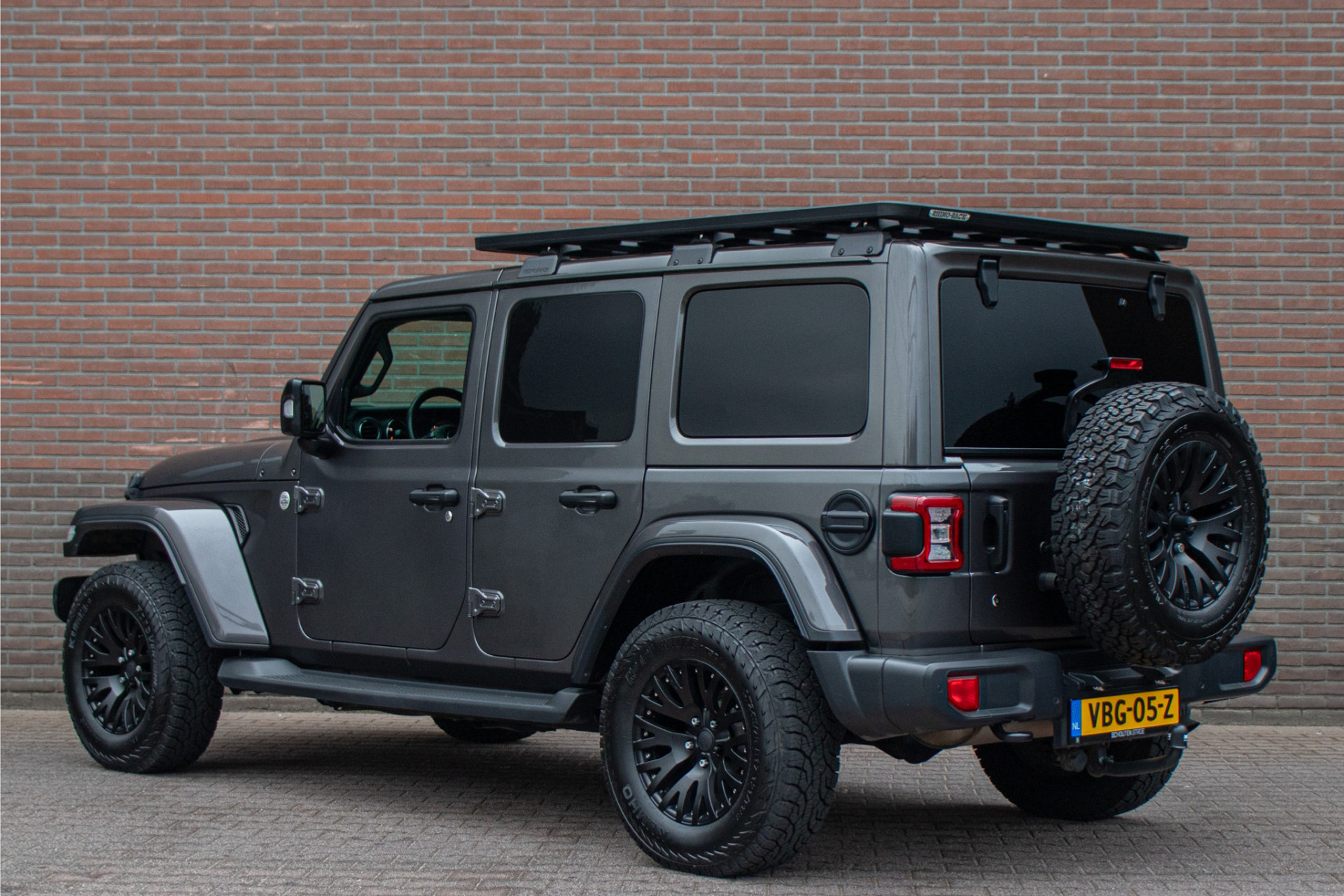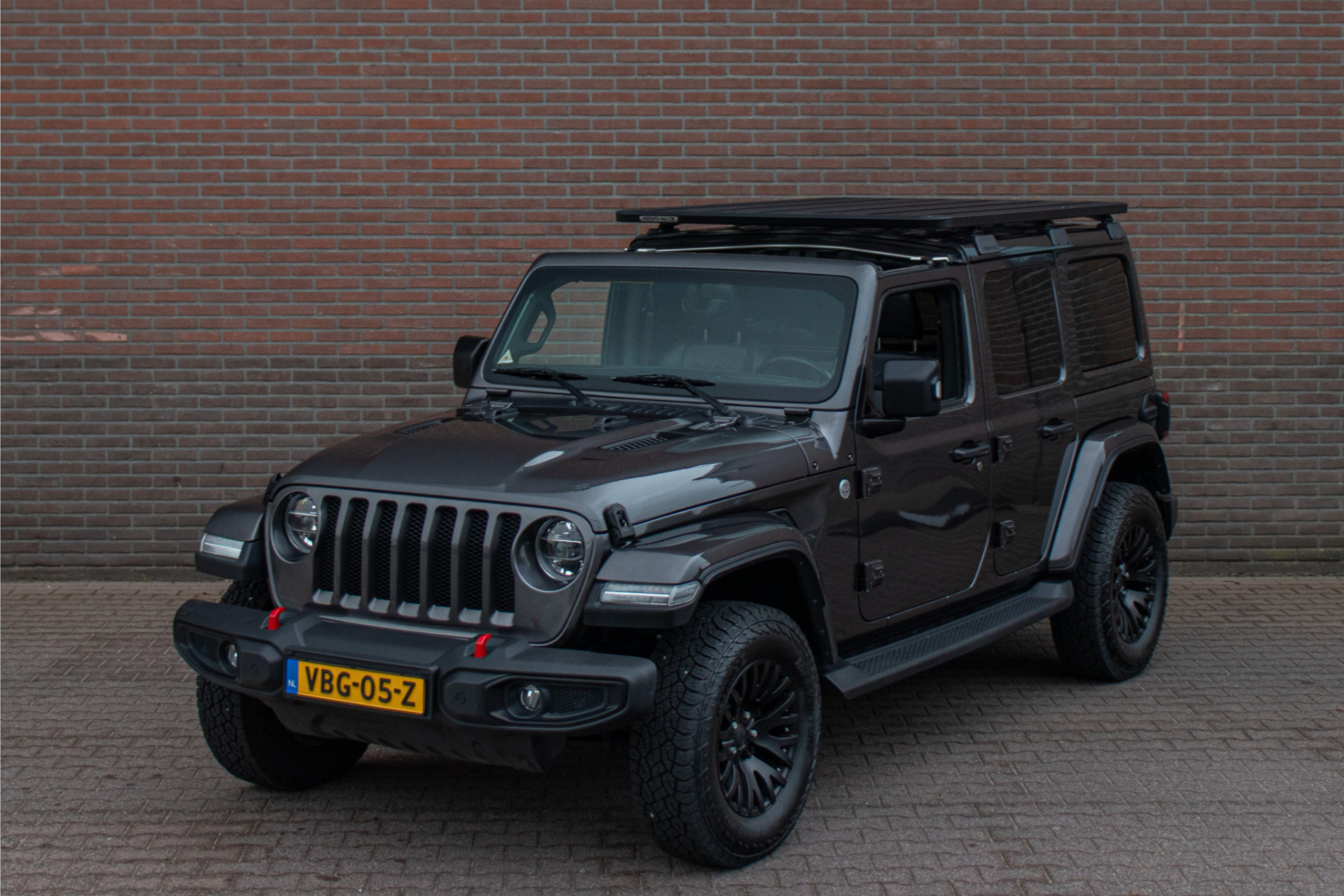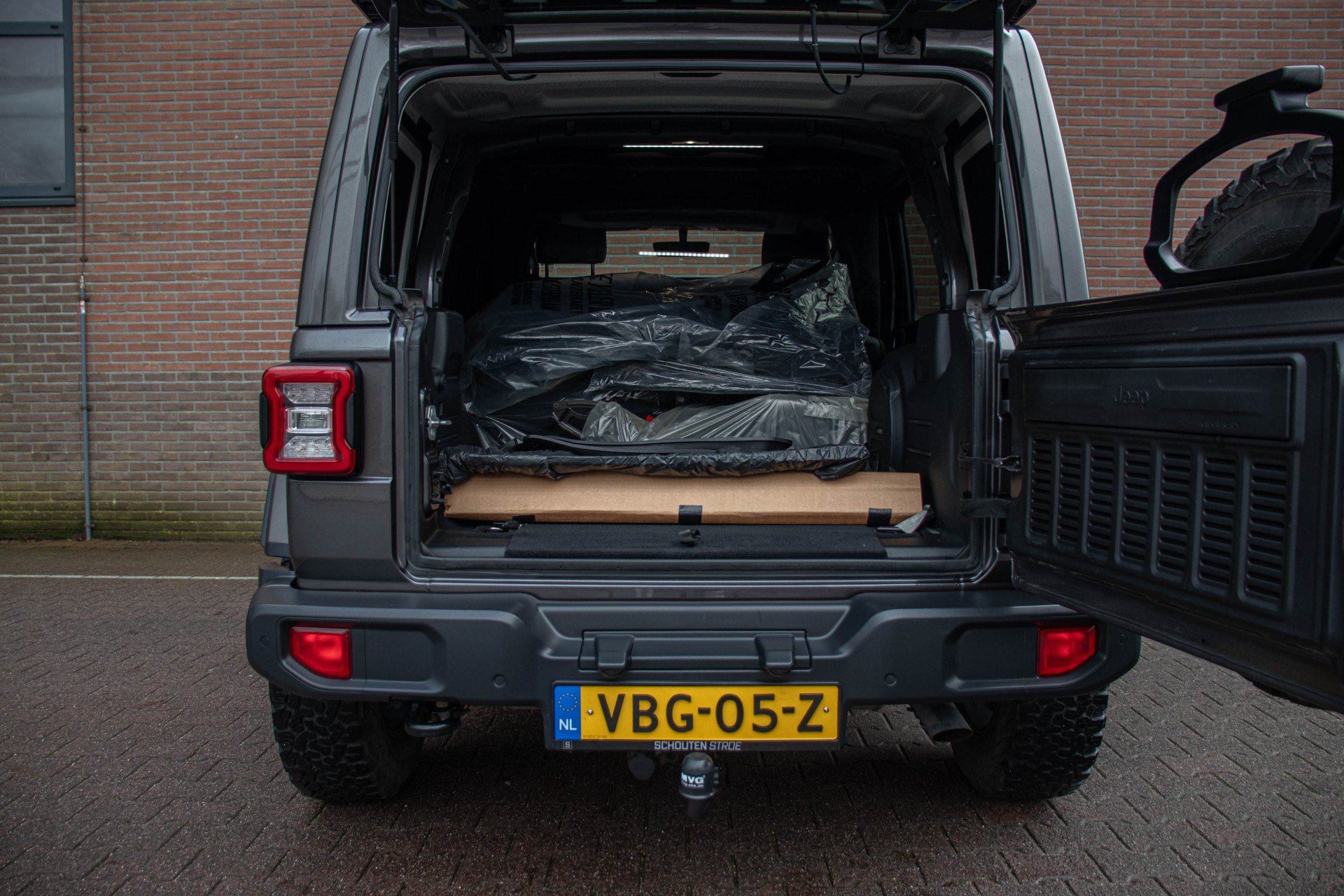 Als Sahara al rijkelijk voorzien van voorzieningen als Uconnect LIVE infotainmentsysteem met 8,4-inch touchscreen, navigatie, Bluetooth en Apple Carplay & Android Auto, ParkView achteruitrijcamera, Parksense parkeerhulp voor/achter en koplampen met Signature LED verlichting.