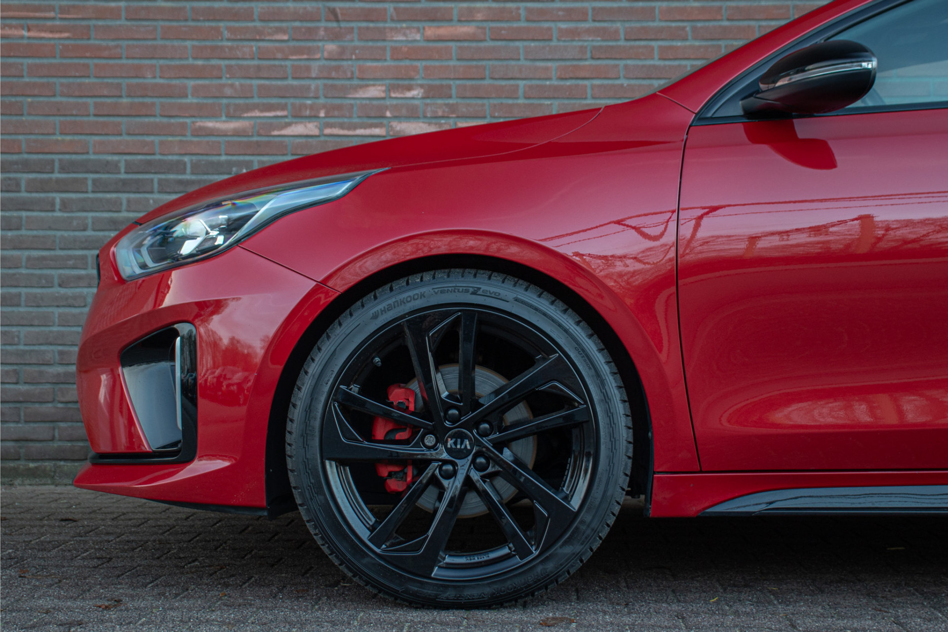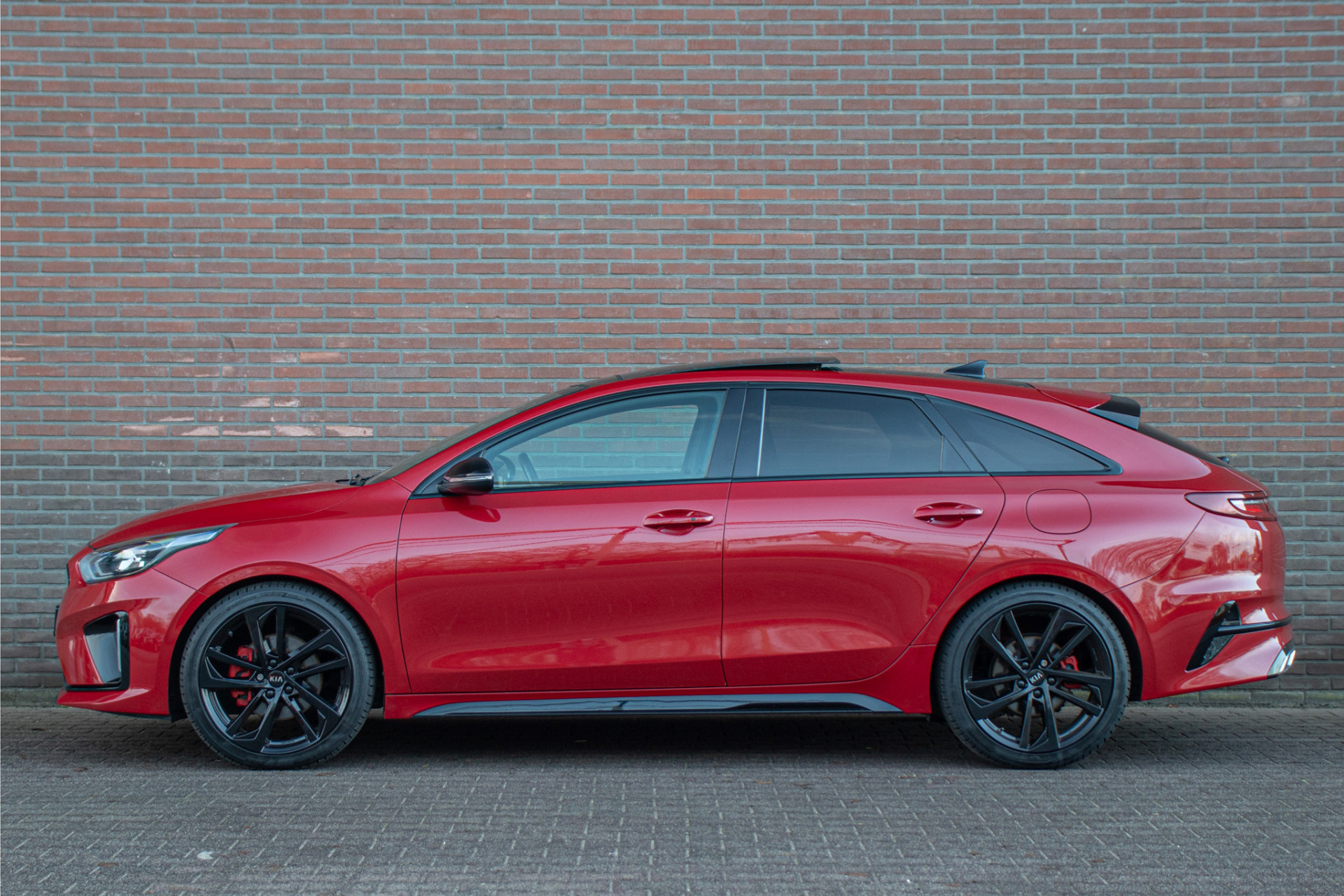 Met deze ProCeed kun je voor de dag komen. In de dynamische GT-Line uitrusting gecombineerd met 'Infra Red' metallic lak, hoogglans zwarte exterieurdetails en hoogglans lichtmetalen sportvelgen is dit zeker een opvallende auto.