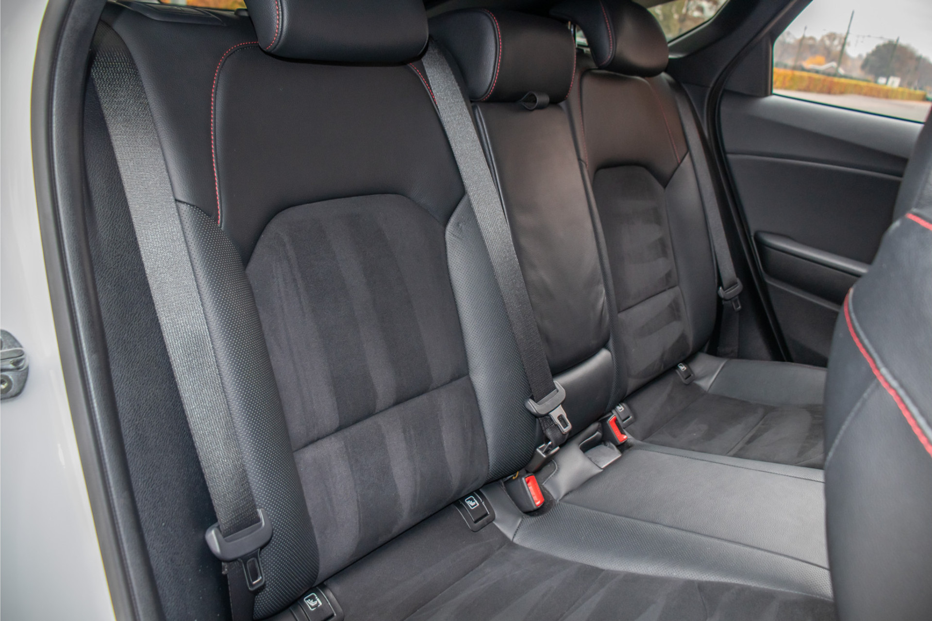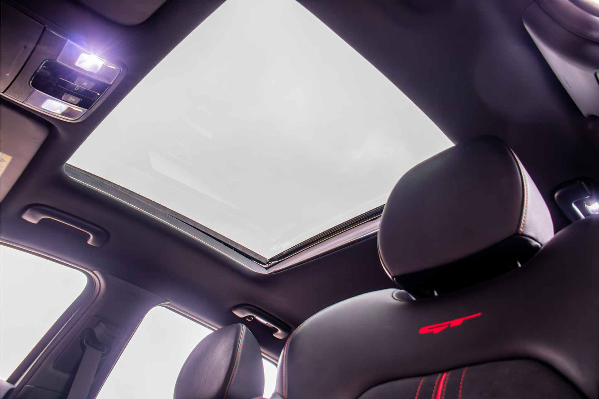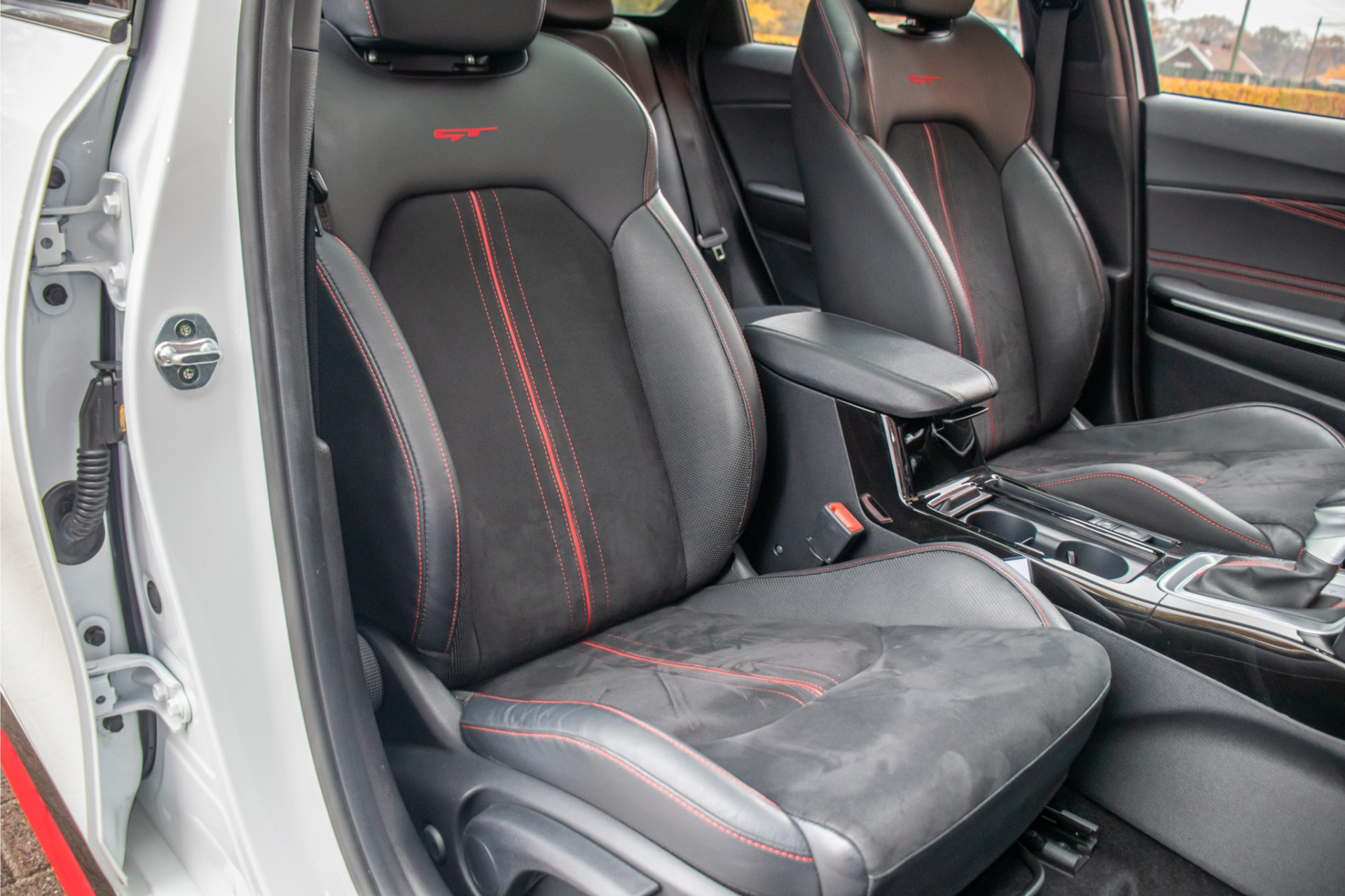 Als topversie GT herken je de auto direct aan de slimme parkeerhulp met sensoren vóór, 18" lichtmetalen velgen inclusief naafkap met rood accent, side skirts afgewerkt in hoogglans zwart met rood accent, grille afgewerkt met donker chroom en rode inleg, remklauwen uitgevoerd in rood, voorbumper met rode bumperlip, geïntegreerde uitlaatsierstukken met einddemper en GT diffuser.