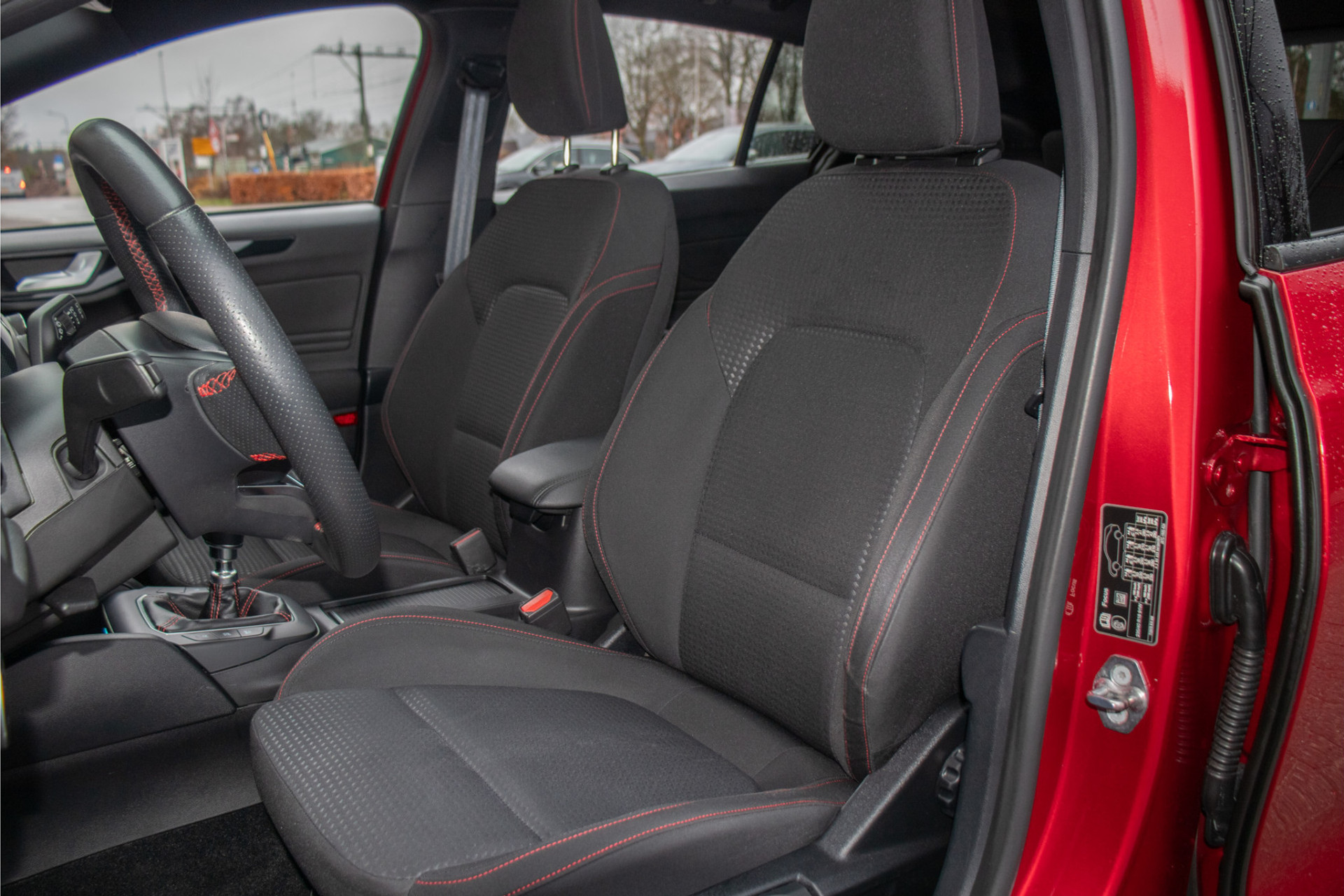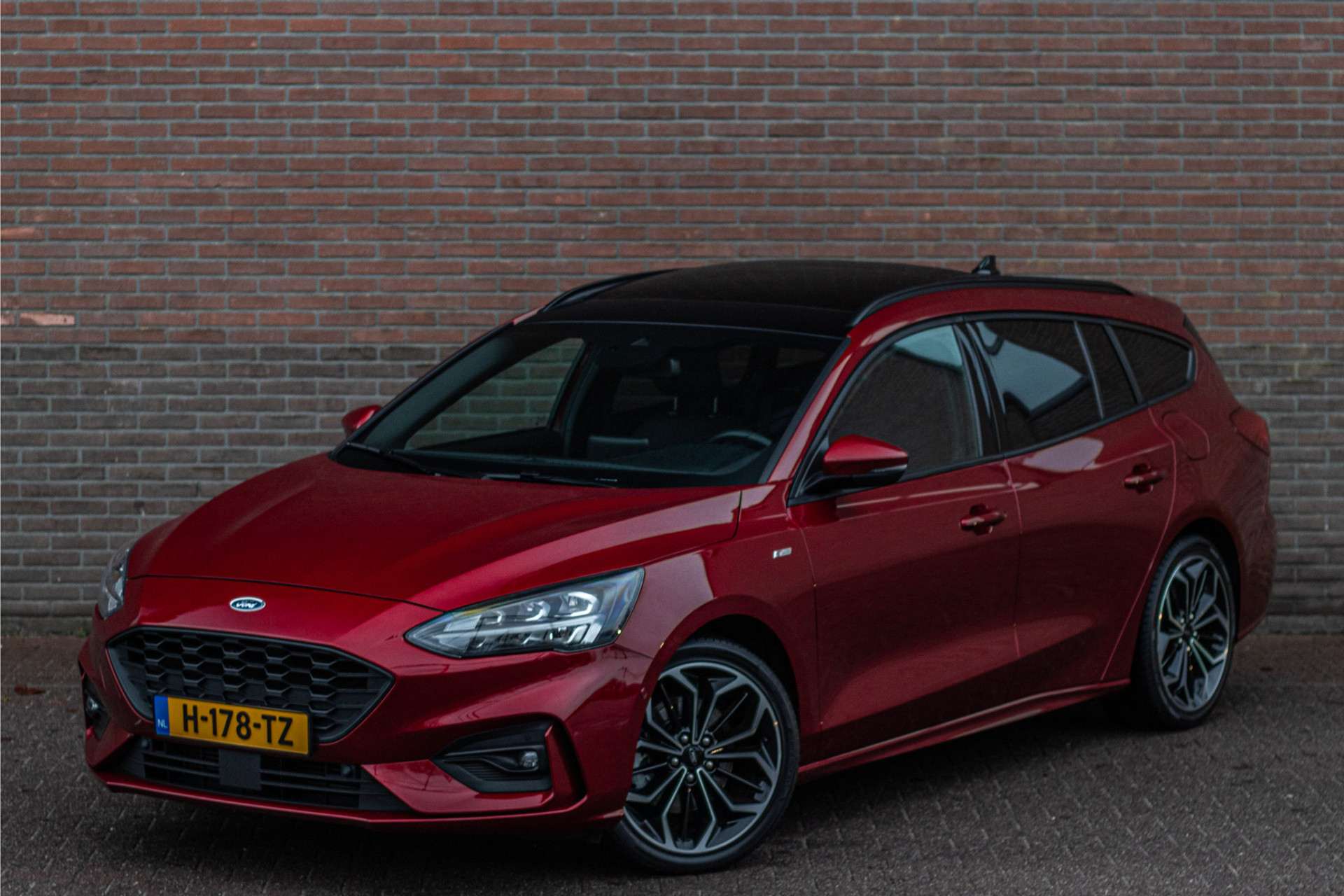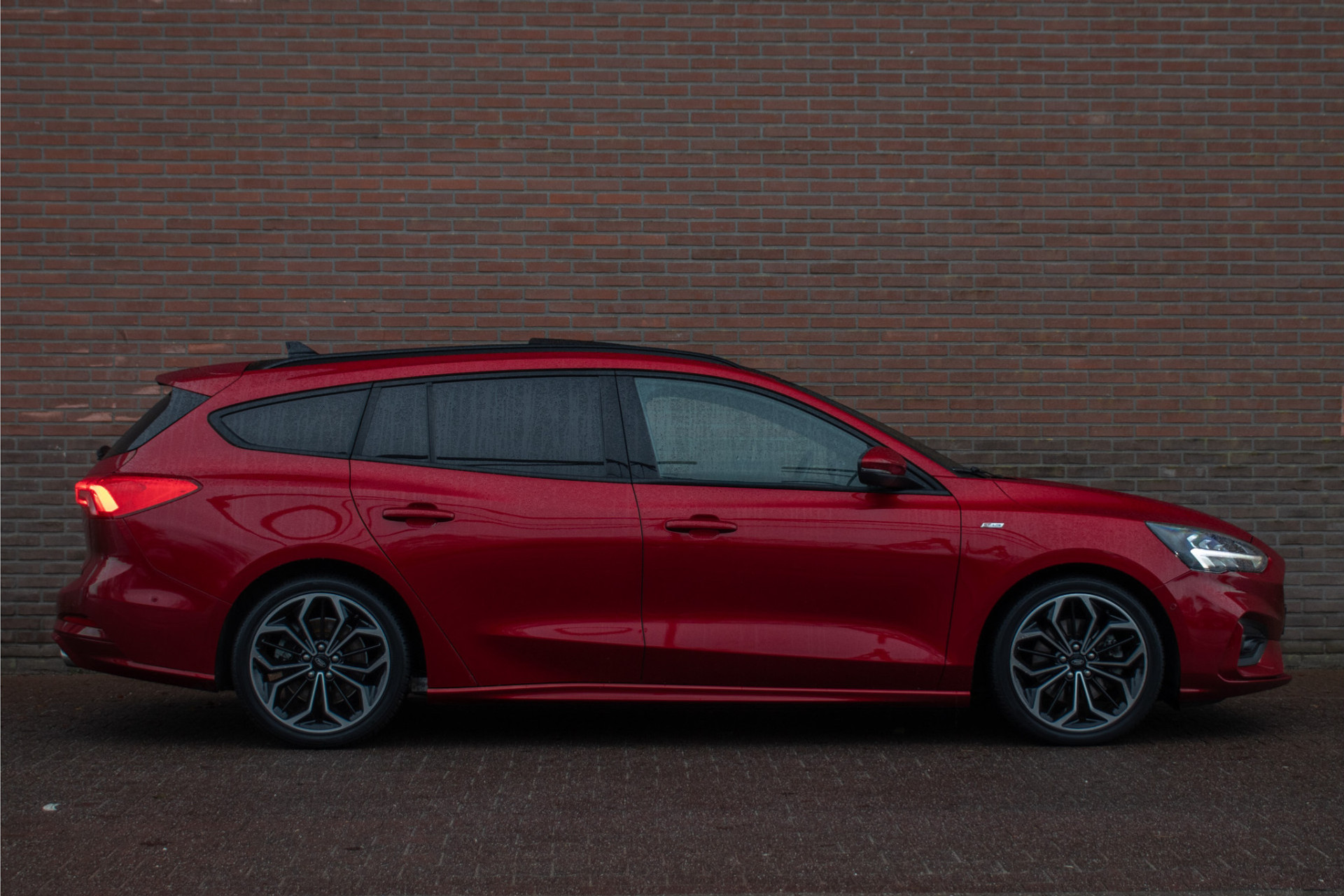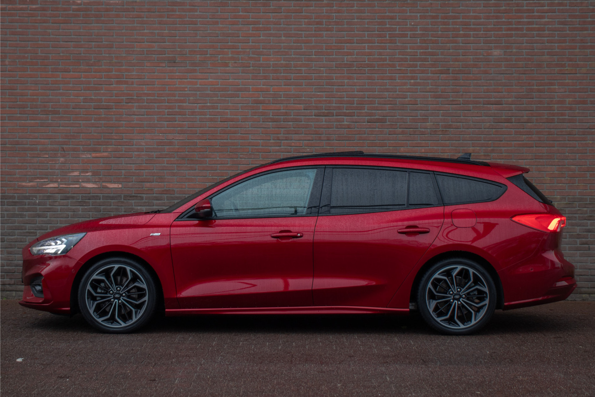 Met deze Focus Wagon maakt u waar u ook komt een verpletterende indruk. Met de fraaie en opvallende kleur 'Ruby Red' metallic gecombineerd met de ST-Line uitvoering en 'Absolute Black Machined' lichtmetaal is dit een ware koppendraaier.