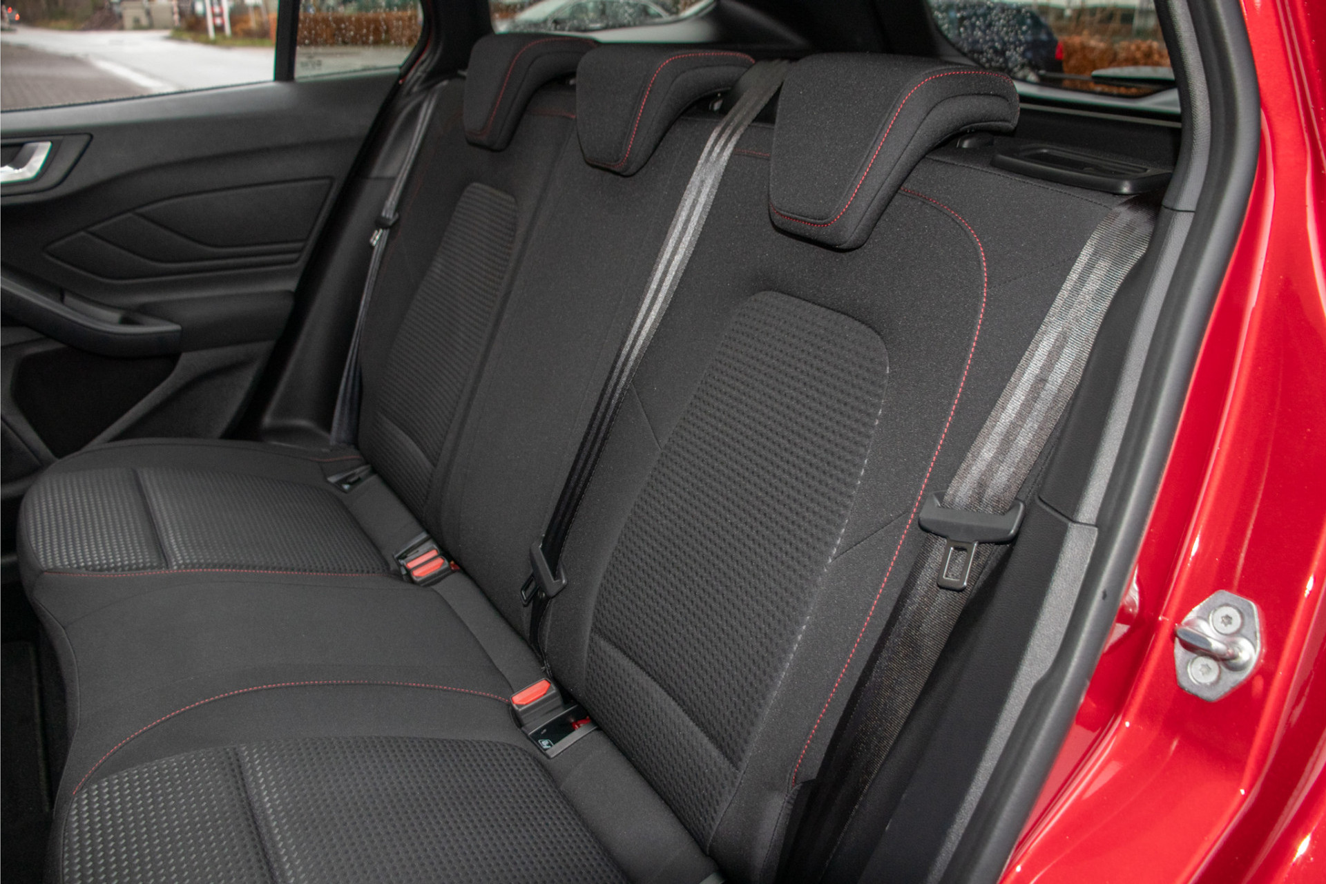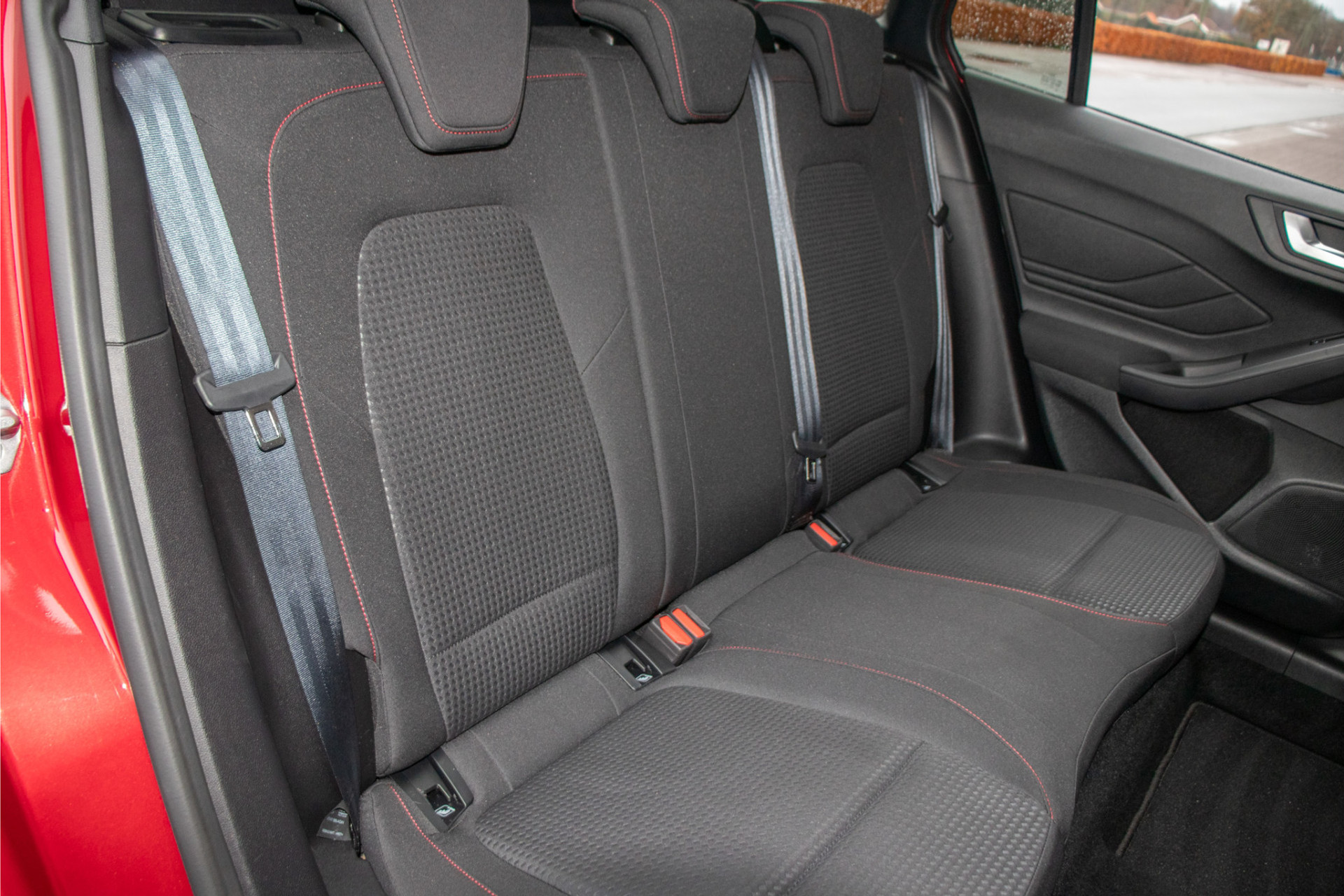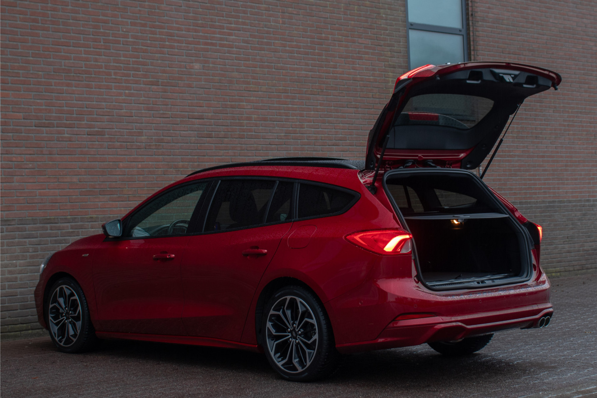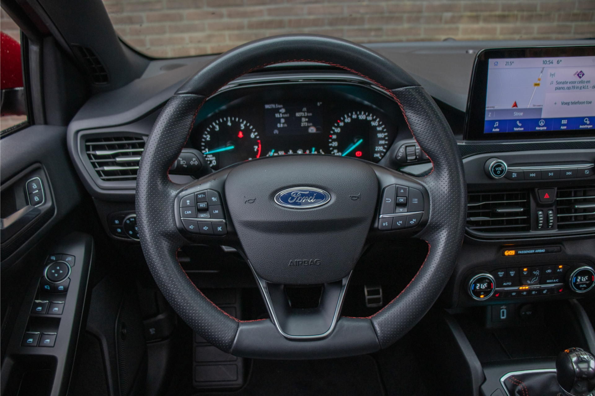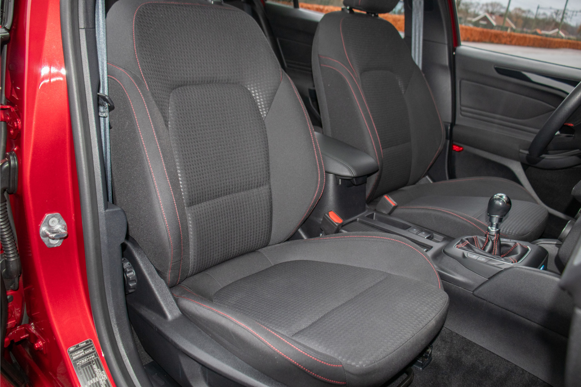 Met deze Focus Wagon maakt u waar u ook komt een verpletterende indruk. Met de fraaie en opvallende kleur 'Ruby Red' metallic gecombineerd met de ST-Line uitvoering en 'Absolute Black Machined' lichtmetaal is dit een ware koppendraaier.