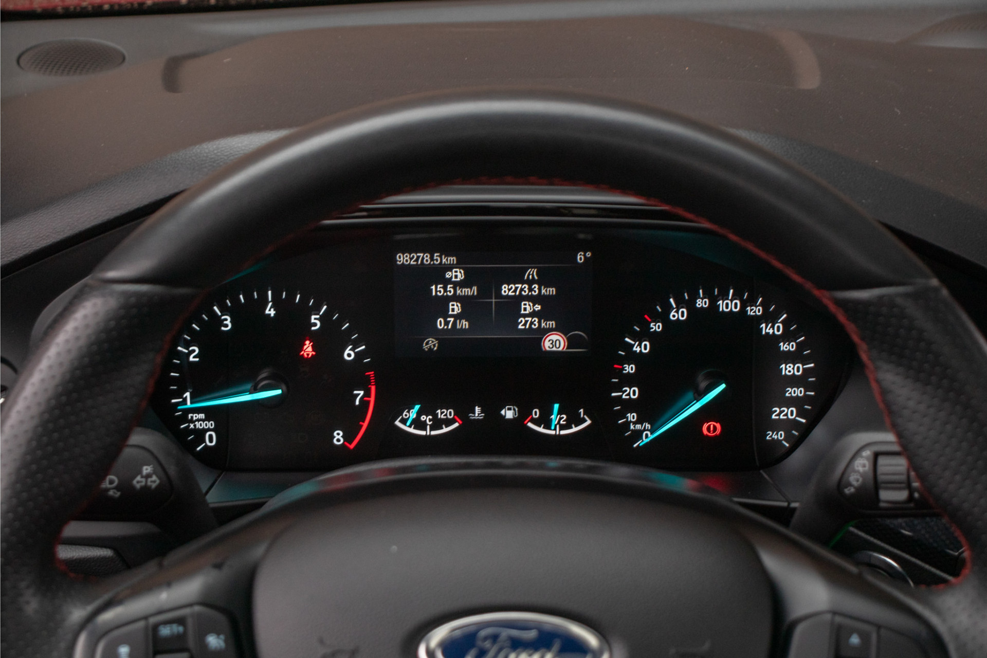 Als ST-Line Business verder standaard al voorzien van o.a. sportieve unieke bumpers/sideskirts/grille, verchroomd dubbel uitlaatsierstuk, dakreling zwart, raamlijsten zwart, LED mistlampen met bochtverlichting, deurbekleding voorportieren en dashboard in 'Carbonite' accenten, lederen stuurwiel met afgeplatte onderkant en 8 inch Touch&Swipe screen met navigatiesysteem en DAB+.