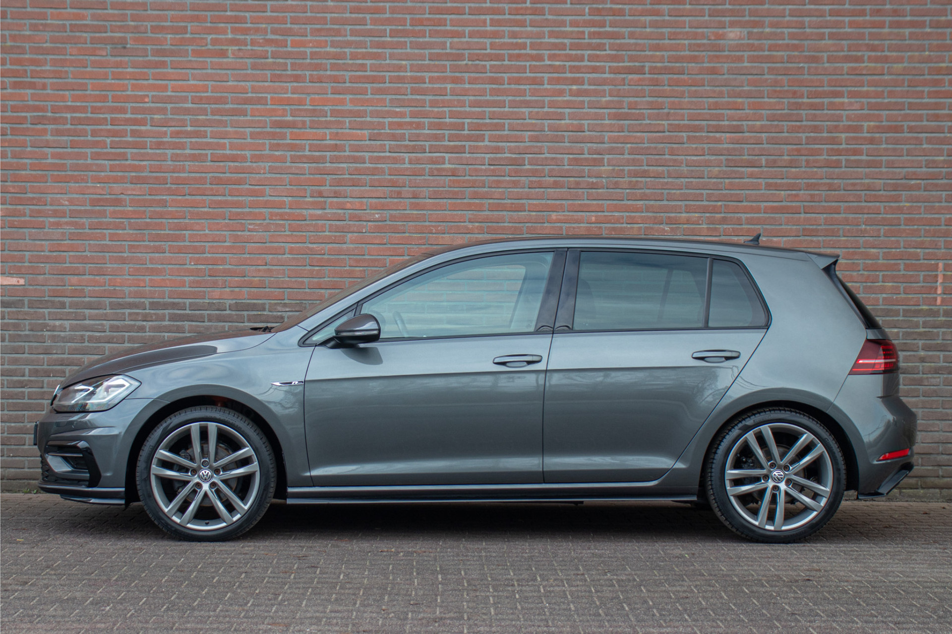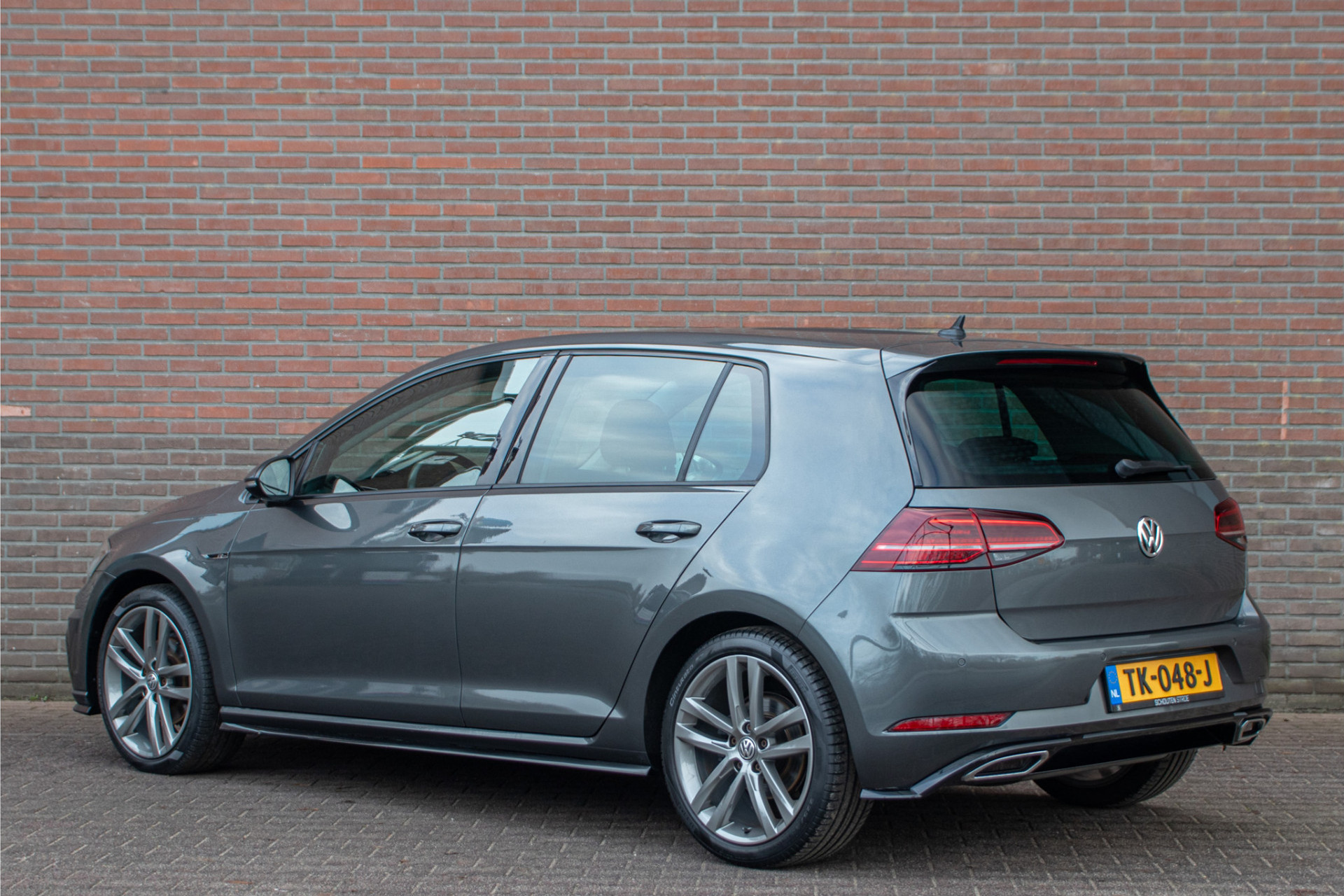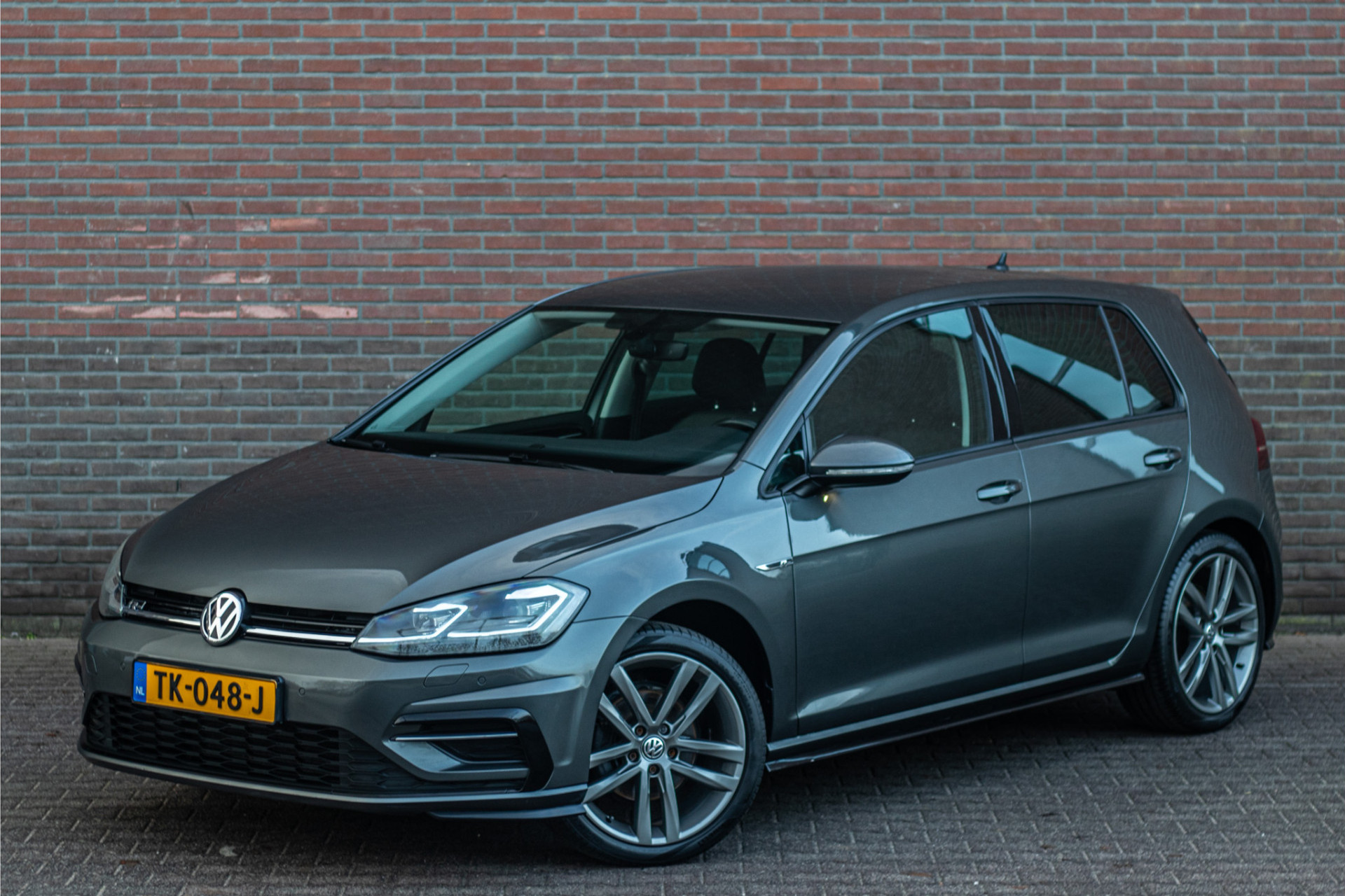 Met een Golf kan men altijd al goed voor de dag komen, maar dit exemplaar maakt wel echt indruk met het R-Line pakket in combinatie met 'Indium Grey' metallic lak en 'Sebring' lichtmetalen wielen.