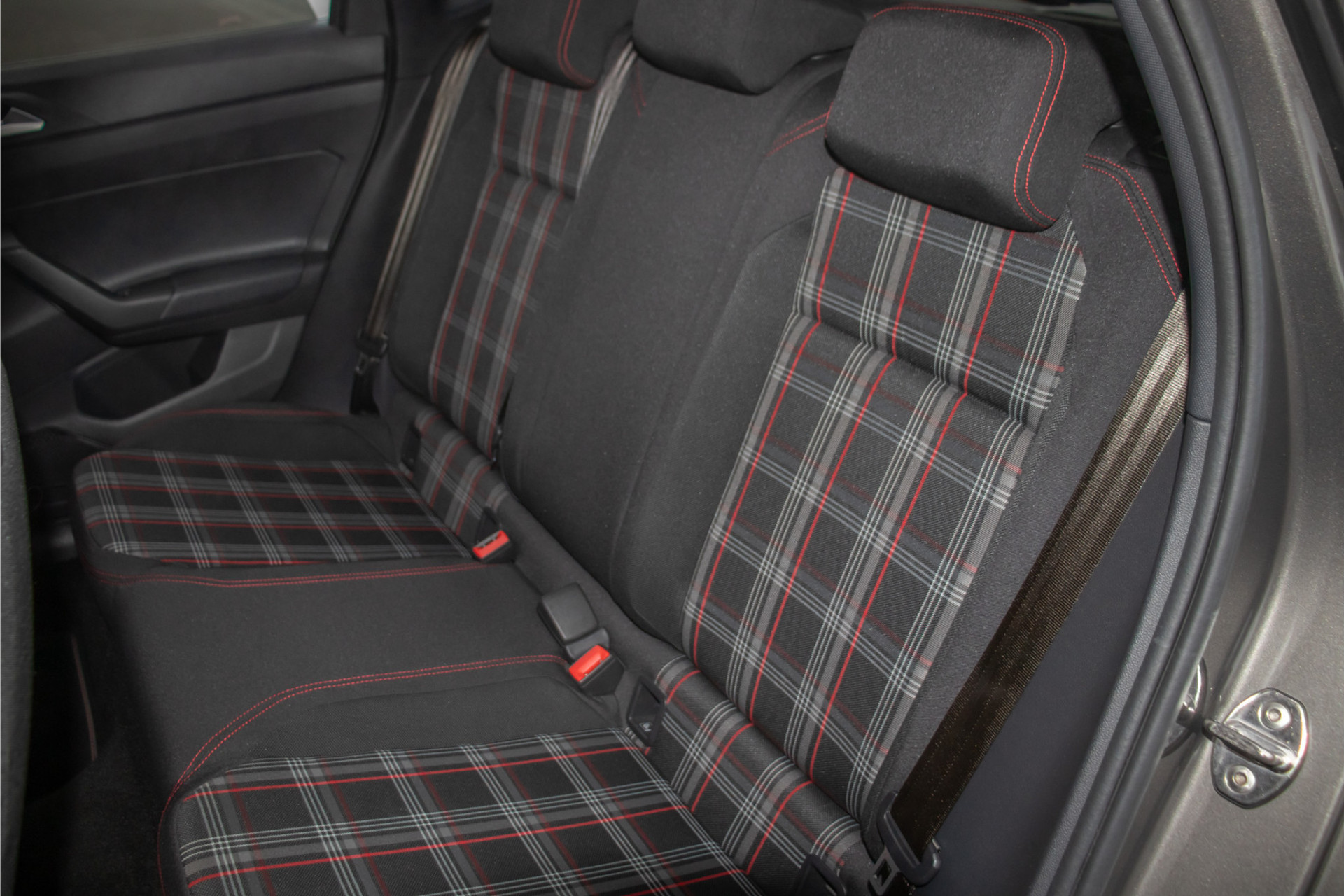 Je herkent deze GTI meteen aan de bumpers in sportief design, luchtinlaat in honingraatstructuur, dorpelverbreding, rode remzadels, donkerrode LED achterlichten, sportstoelen vóór, sportstuurwiel en zwarte dakhemel. Met de krachtige 2 liter turbomotor gekoppeld aan een DSG 6-traps automaat valt er verder weinig nog te meer wensen.