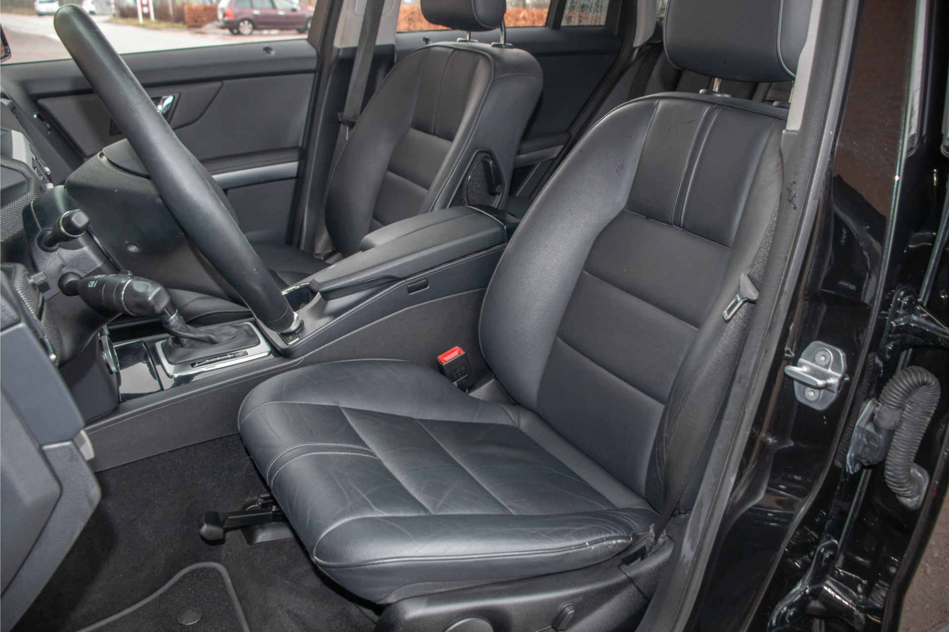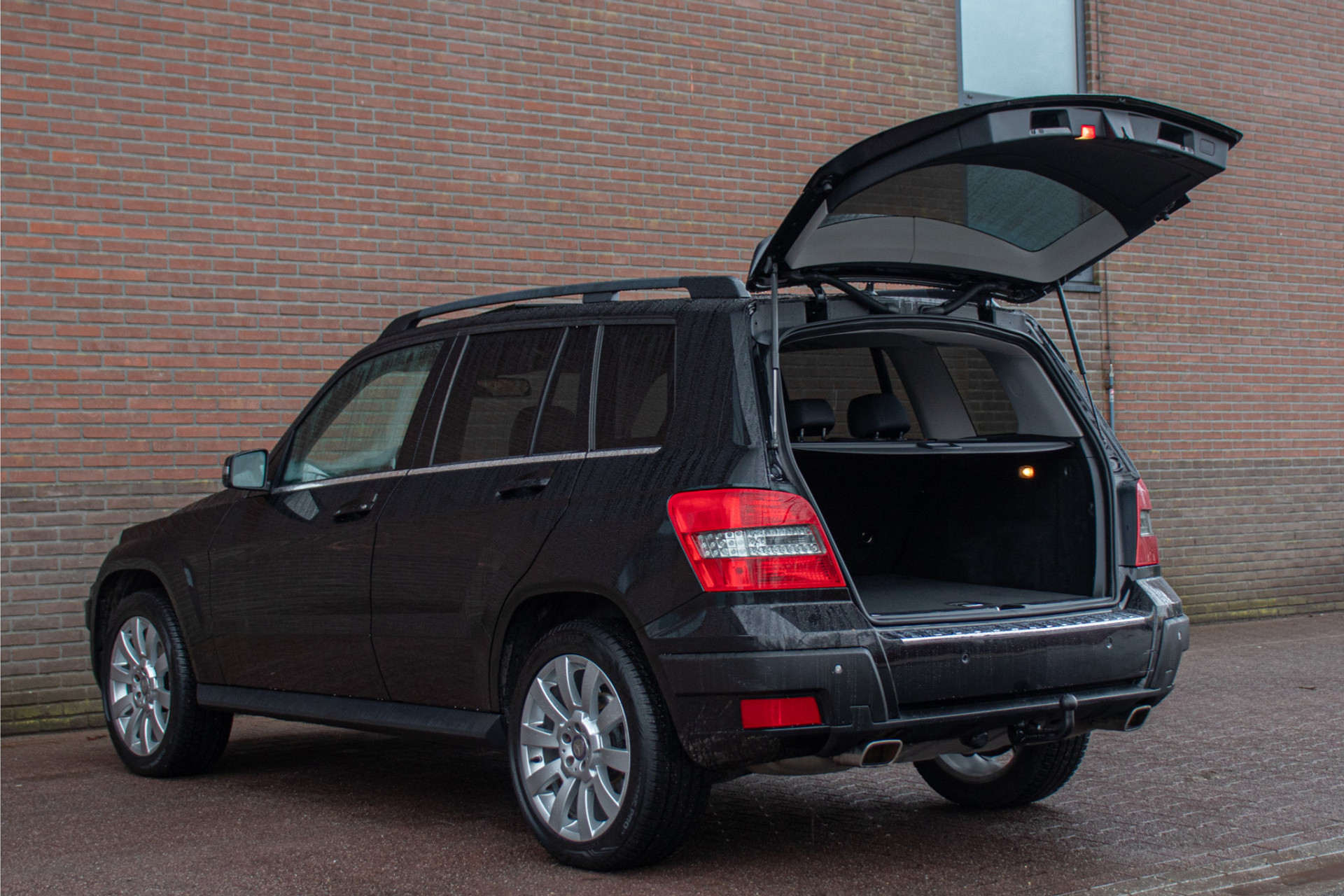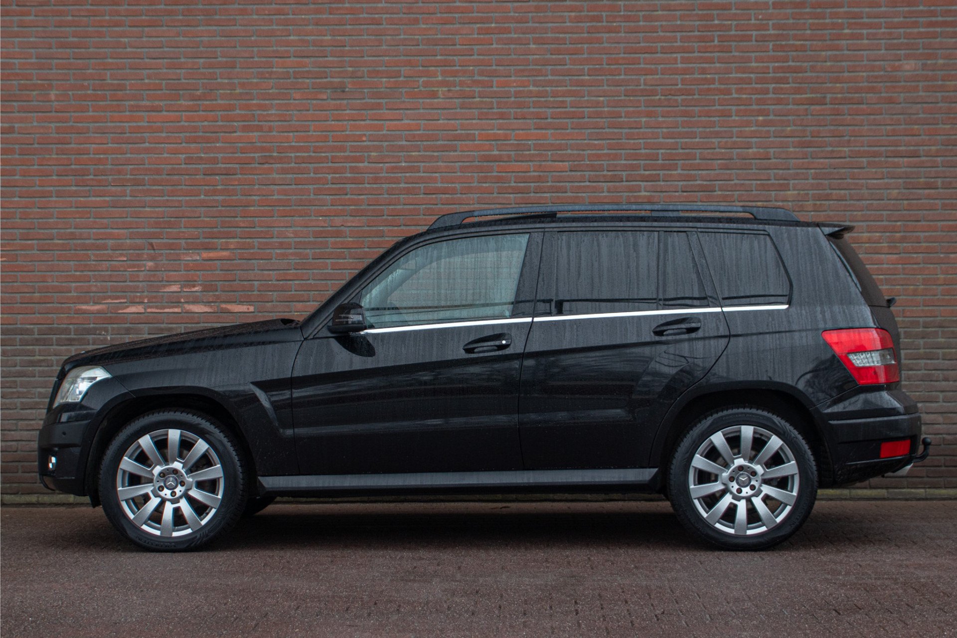 Wegens inruil verkregen; fraaie en zeer complete GLK 280 met een strakke combinatie van 'Obsidiaanzwart' metaallak en zwart lederen interieur.