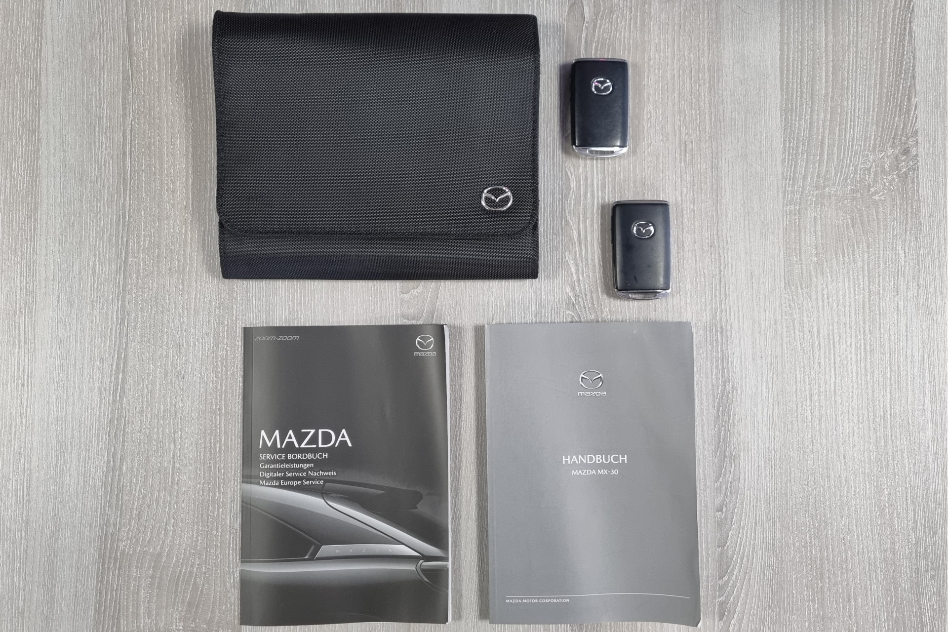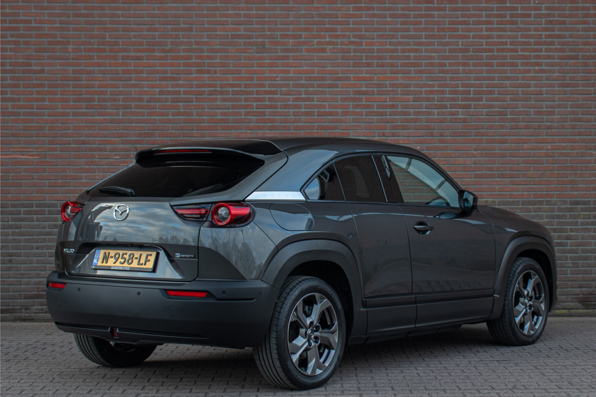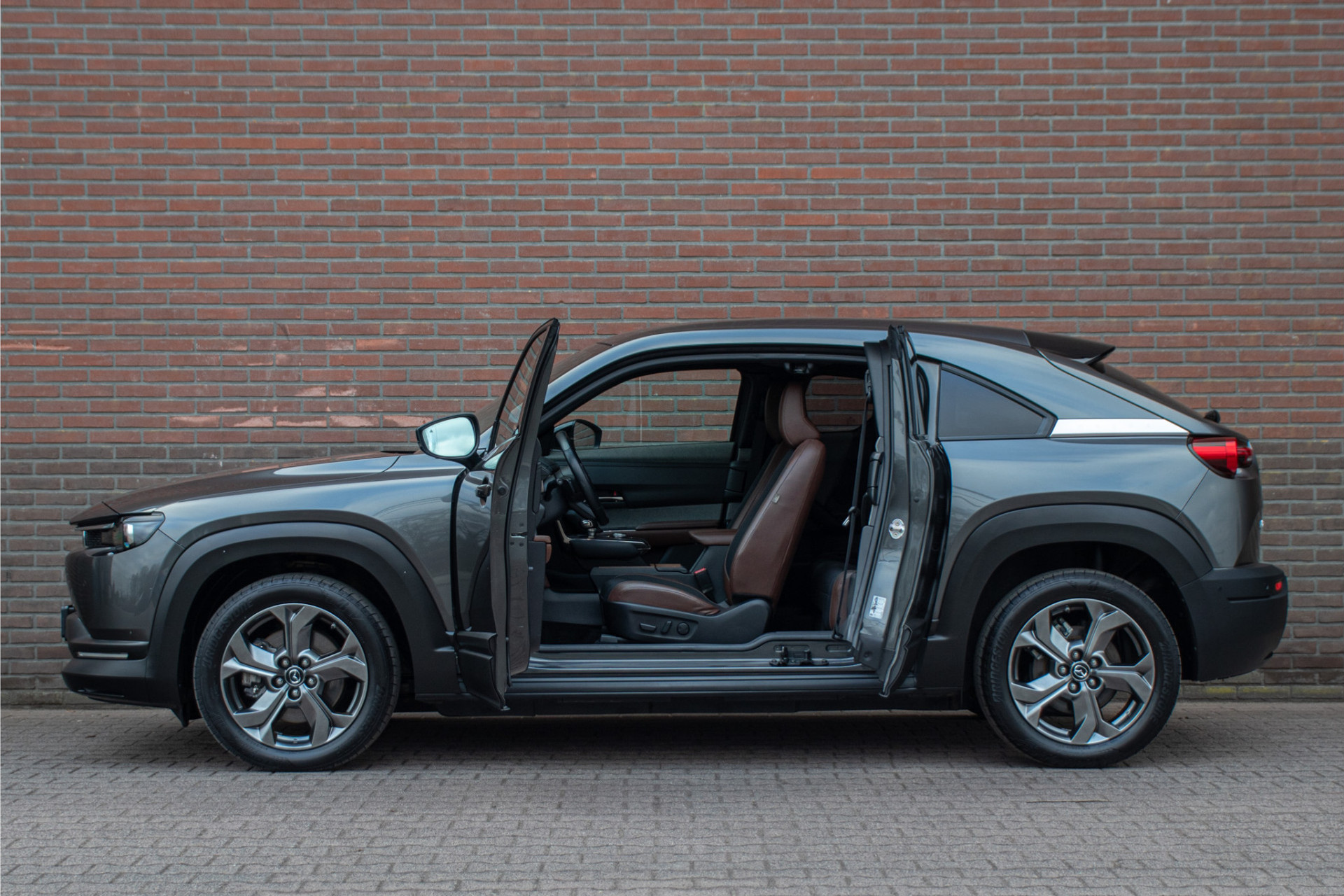 De MX-30 heeft een aantal unieke kenmerken zoals de bijzondere naar achteren scharnierende achterportieren, de kurken afwerking in het interieur en natuurlijk de elektrische aandrijflijn.