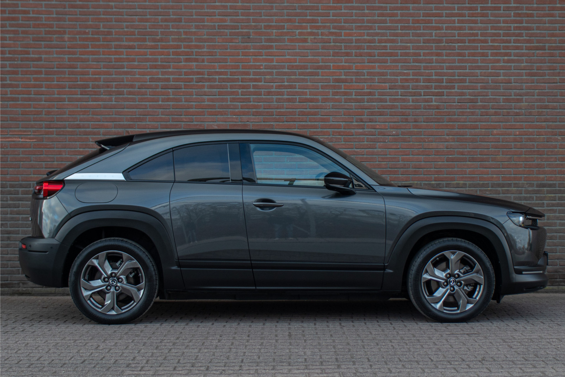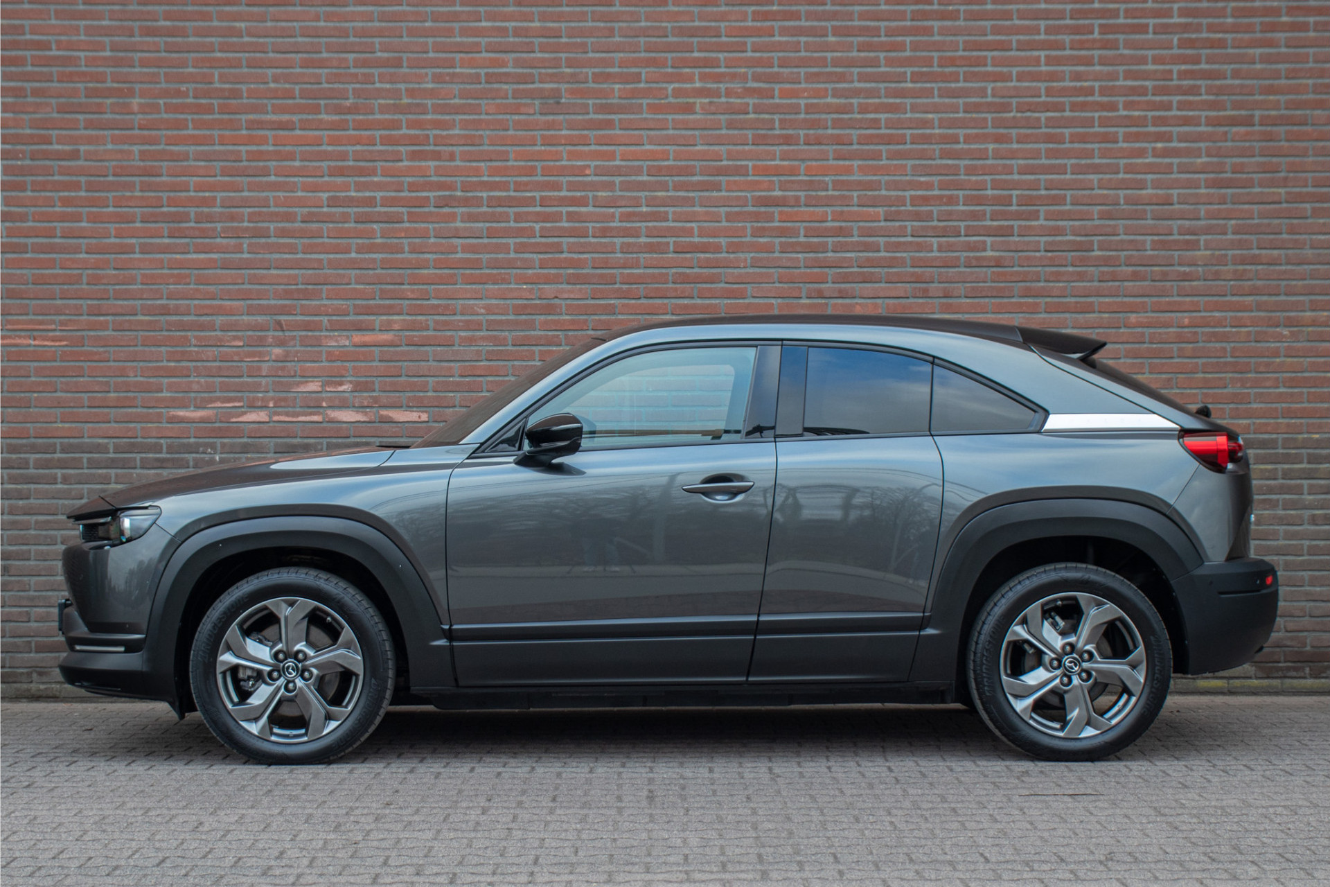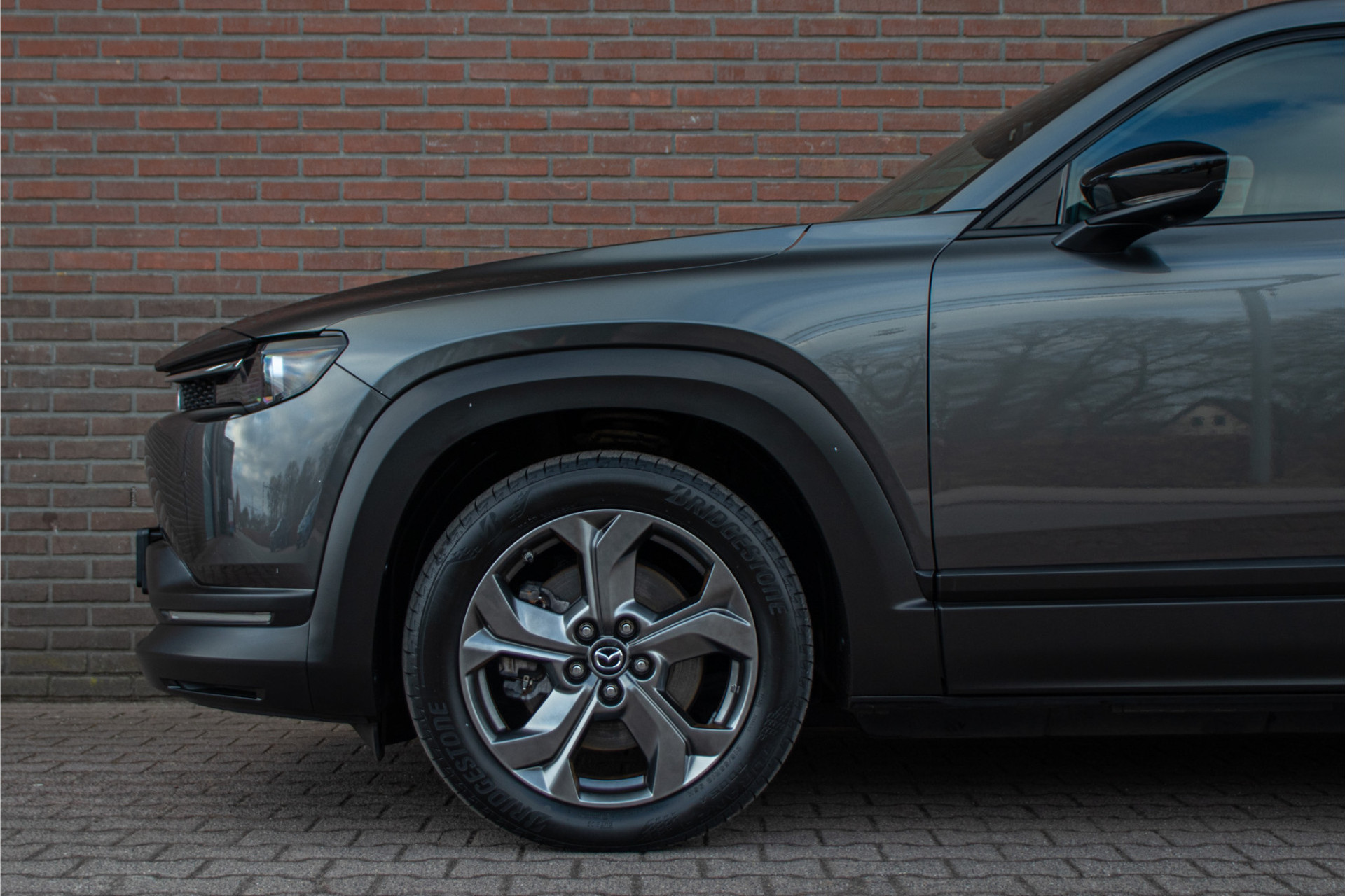 De MX-30 heeft een aantal unieke kenmerken zoals de bijzondere naar achteren scharnierende achterportieren, de kurken afwerking in het interieur en natuurlijk de elektrische aandrijflijn.