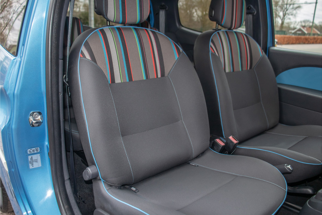 Deze leuke Twingo is uitgevoerd als Collection welke tijdelijke beschikbaar was en is voorzien van van een aantal leuke opties voor een aantrekkelijke prijs. Zo is deze standaard uitgerust met airconditioning, Radio Renault, toerenteller, elektrisch verstelbare en verwarmbare buitenspiegels en Pack Collection in wit. Bij het nieuw samenstellen is ook nog eens gekozen voor: - Pack Individueel; individueel verschuifbare en neerklapbare stoelen achter en in hoogte verstelbare bestuurdersstoel - Snelheidsregelaar en -begrenzer - 15" lichtmetalen wielen 'Alizar' - 'Bleu Majorelle' metallic lak