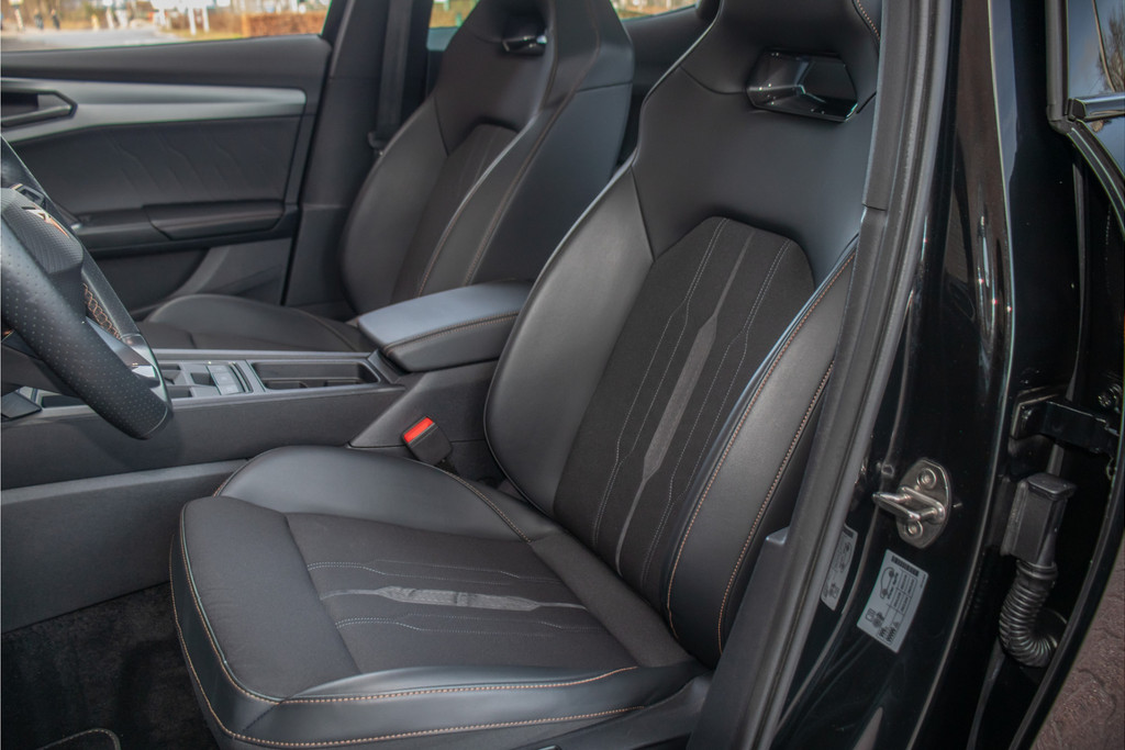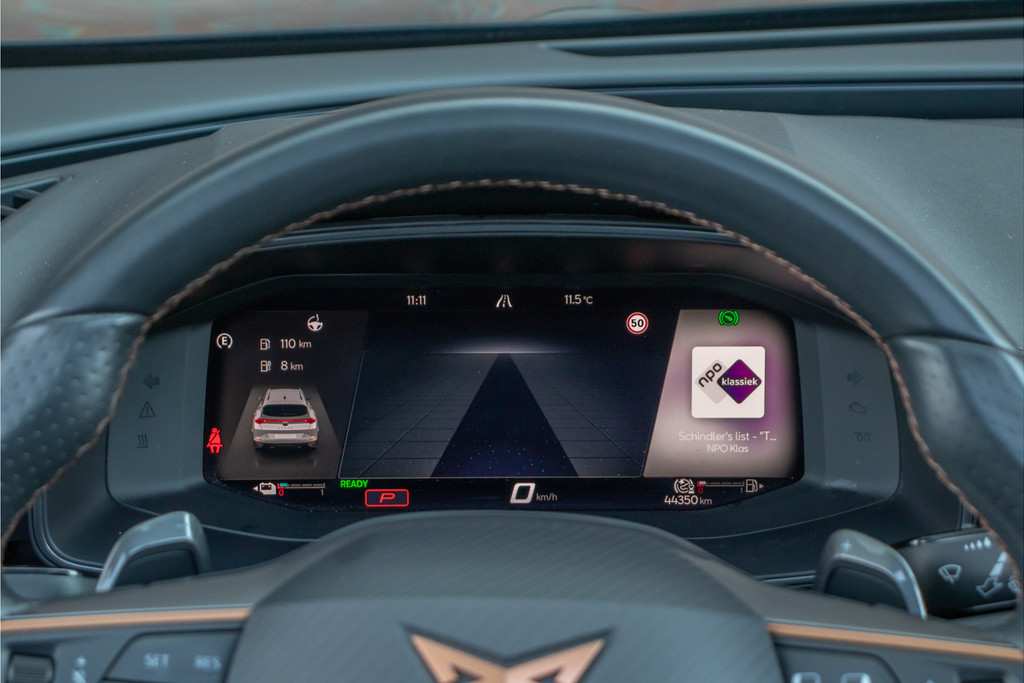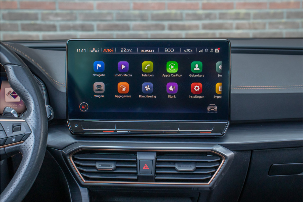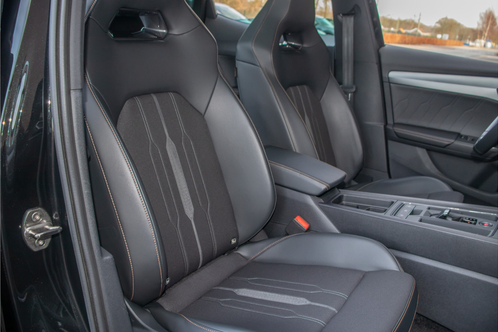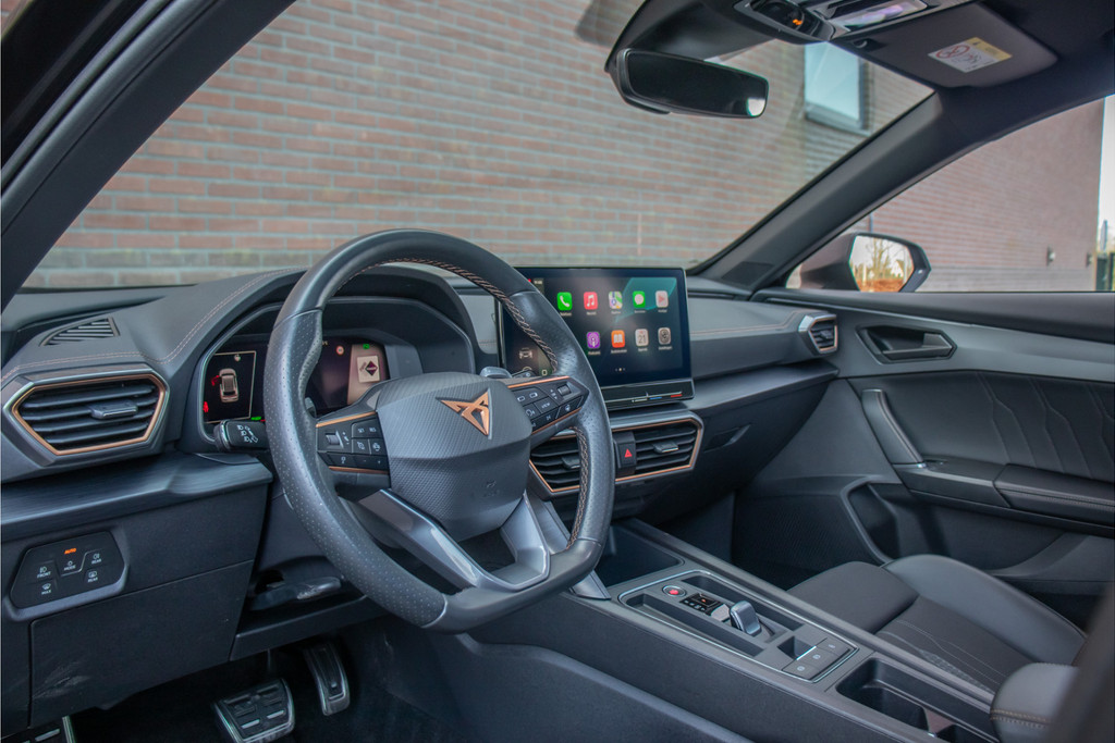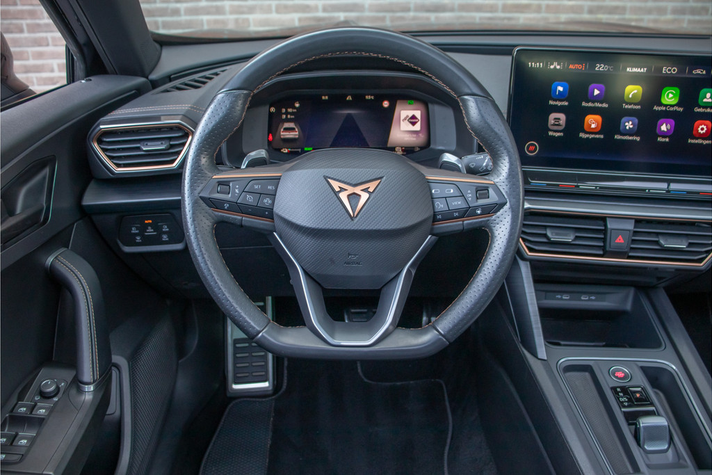 Als VZ standaard al rijk uitgerust met o.a. adaptief onderstel, CUPRA Drive Profile, automatische afstandsregeling ACC, Side Assist, CUPRA sportschaalstoelen met 'Sharp Textiel' bekleding, navigatiesysteem met 12" touchscreen, Virtual Cockpit, Smart Ambient Light, Climatronic met 3-zone temperatuurregeling, Keyless Go met Kessy Advanced, achteruitrijcamera en Full-LED koplampen.