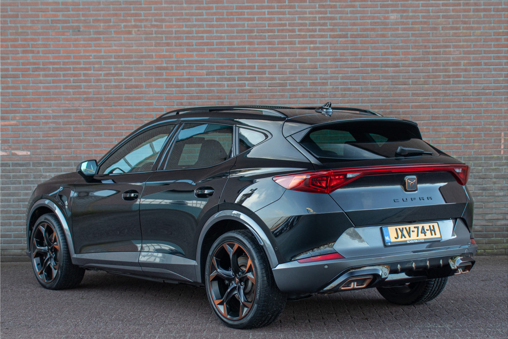 De metallic kleur 'Midnight Black' geeft een fraai contrast met de typische koperen CUPRA details en de optionele 'Exclusive I Black/Copper' wielen.