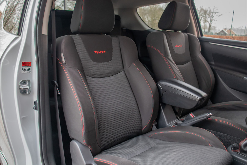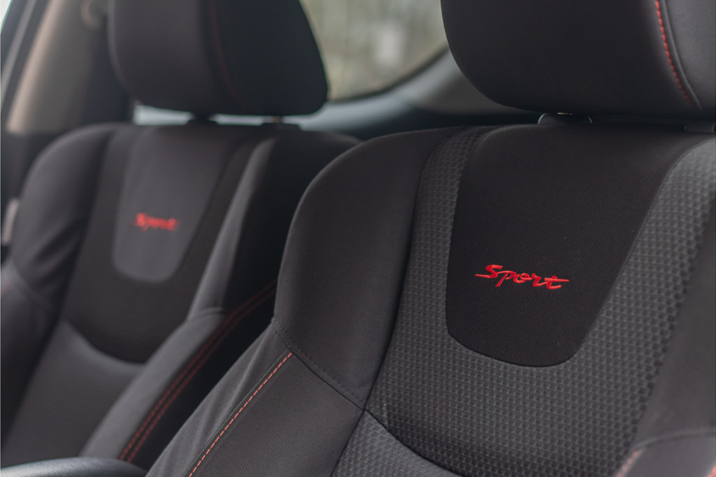 Qua uitstraling zit het helemaal snor met 'Cool White Pearl' lak met antraciet details gecombineerd met two tone stoffen bekleding met rood stiksel en 'Metal'-look accenten interieur. Als Sport is dit de meeste complete uitrusting met o.a.: - sportstoelen vóór met stoelverwarming - sportpedalen - automatische airconditioning - cruise control met bedieningstoetsen op het stuur - sleutelvrije start/stopknop met automatische vergrendeling - parkeersensoren achter - Multireflector koplampen met HID xenon - getint glas - sportbumpers - lichtmetalen velgen - metallic lak