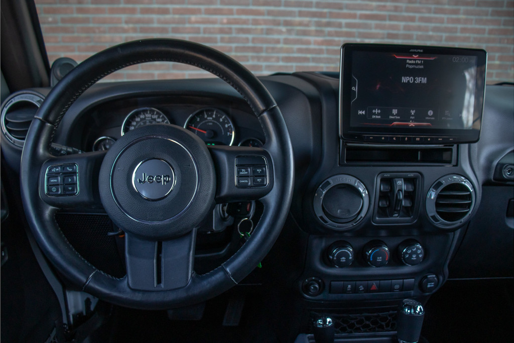 Voor de aandrijving wordt gezorgd door de Pentastar 3.6 V6 gekoppeld aan een vijf-traps automaat en 'Command-Trac' vierwielaandrijving. Als Sahara is deze verder helemaal compleet met automatische klimaatregeling, cruise control, lederen multifunctioneel stuurwiel en Freedom Top hardtop.