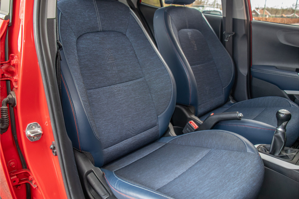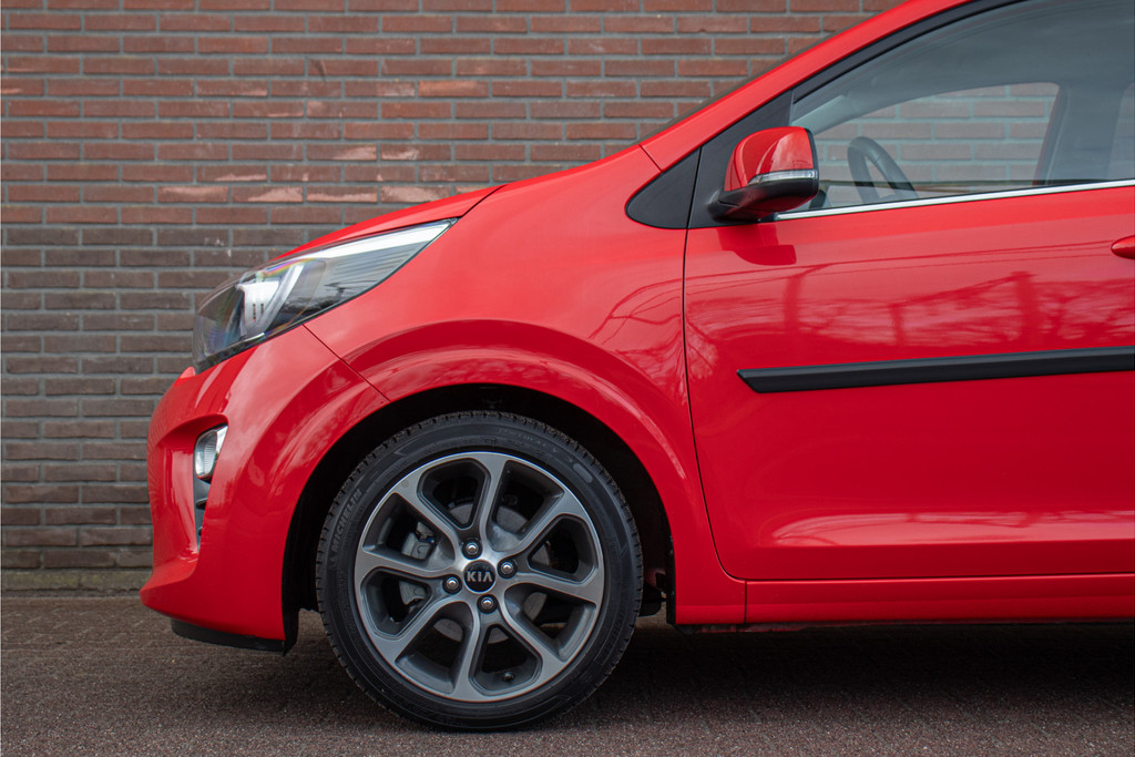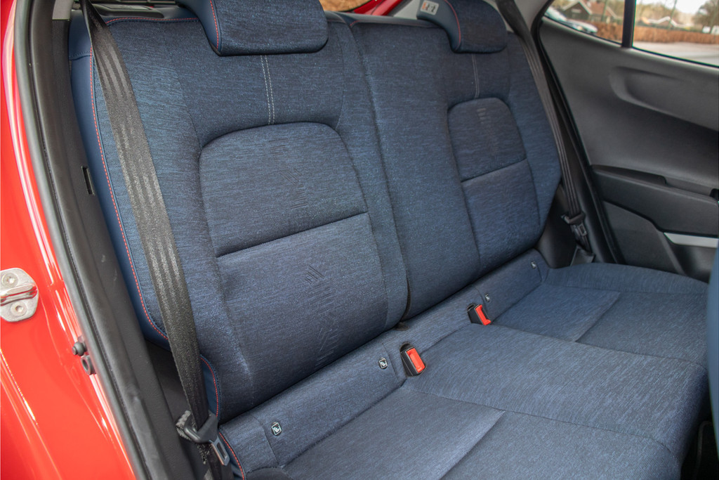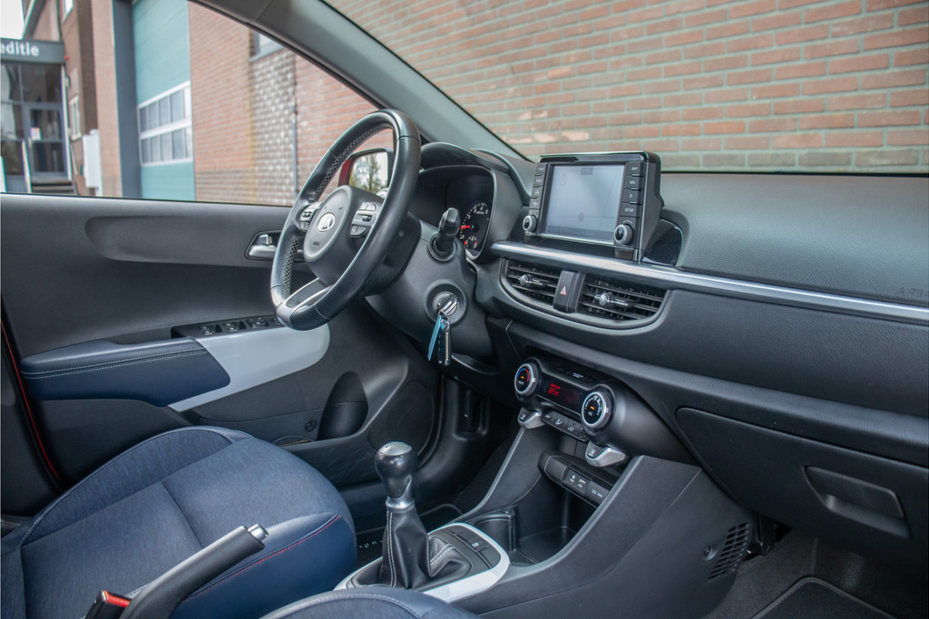 De kleurencombinatie van 'Shiny Red' metallic met 'Navy' interieur maakt van deze Kia een zeer frisse en opvallende verschijning.