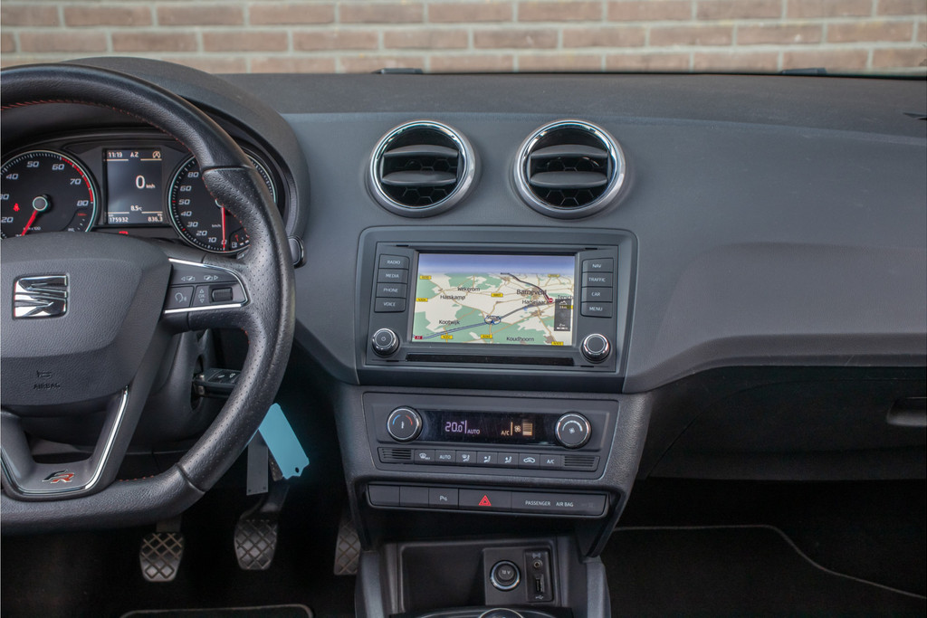 In de FR uitvoering heeft deze SEAT al een goede uitstraling, maar in combinatie met de optionele 'Tagus Black' lichtmetalen wielen en 'Nevada White' metallic lak is dit wel heel stoere auto.